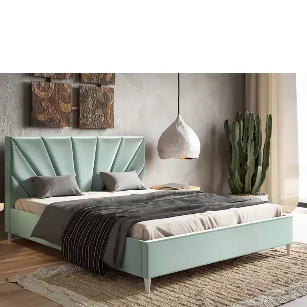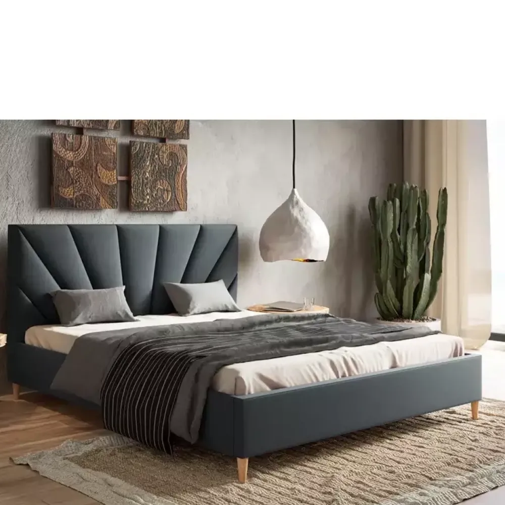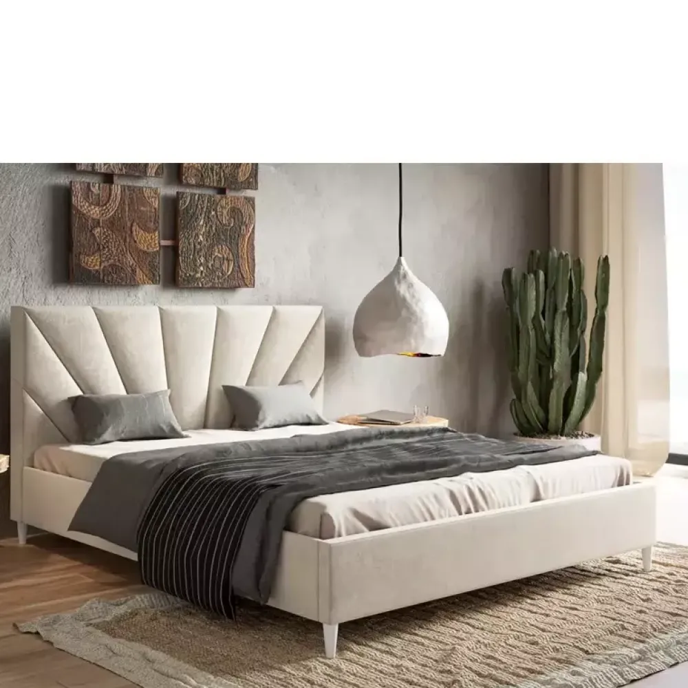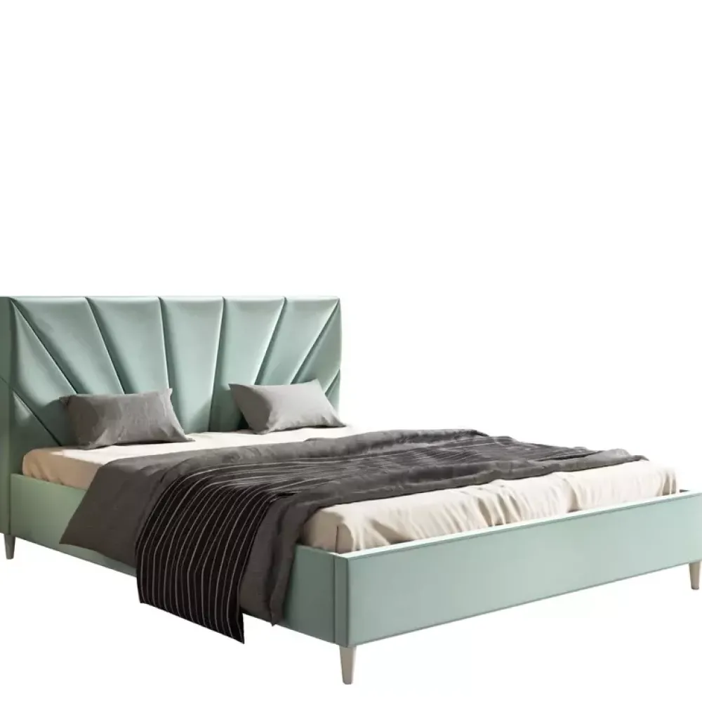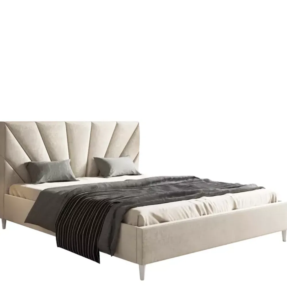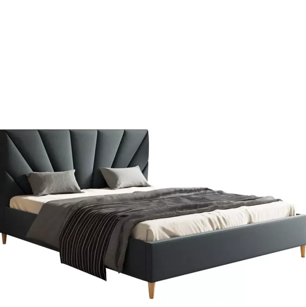 - Łóżko sypialniane z wysokim tapicerowanym zagłówkiem, udekorowane wzorem przypominającym muszlę. Cała konstrukcja unosi się na wysokich 13 cm nogach wykonanych z drewna dostępnych w trzech wariantach kolorystycznych.