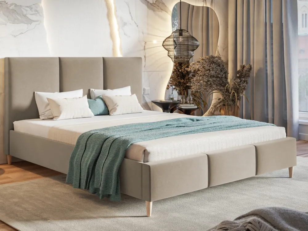 Tapicerka łóżka jest wykonana z wysokiej jakości tkanin, które są dostępne w wielu wzorach i kolorach, dzięki czemu można łatwo dopasować łóżko do indywidualnych preferencji oraz wystroju sypialni. Ozdobne przeszycia dodają łóżku wyrafinowanego wyglądu, podkreślając jego elegancki charakter i dbałość o detale.