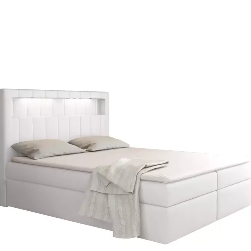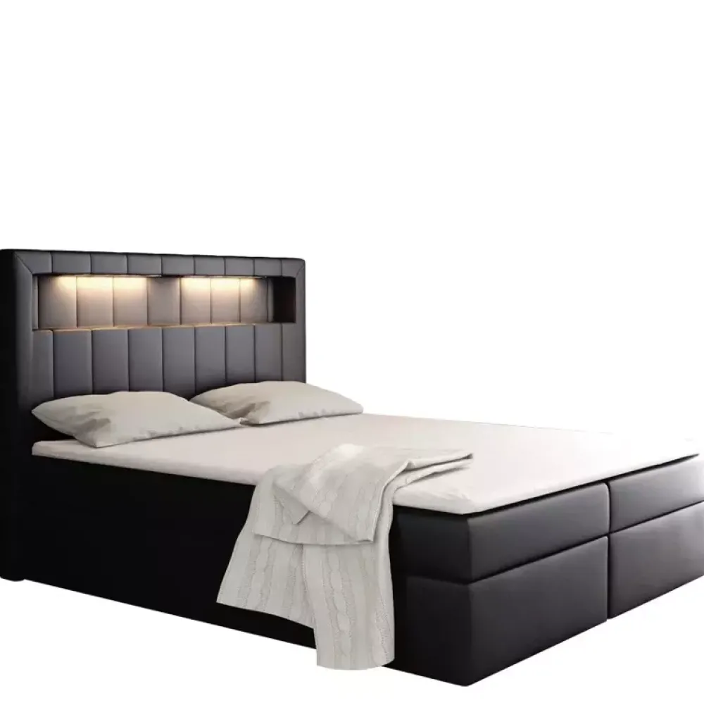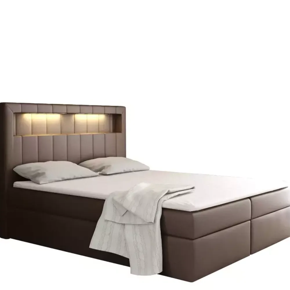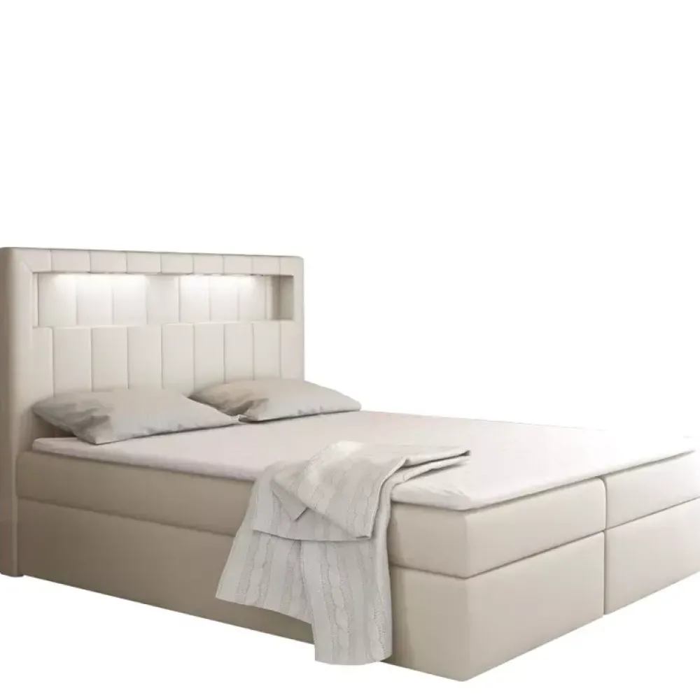 - Łóżko kontynentalne o powierzchni spania 120×200 cm. Łóżko z pojemnikiem na pościel. Łóżko z materacem kieszeniowym. Podświetlany zagłówek. Dostępne w wielu kolorach oraz gatunkach tkanin.