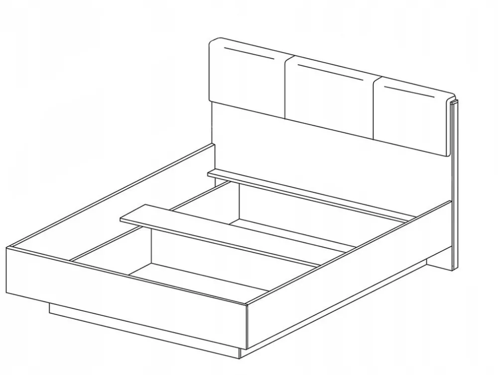 - zagłówek: odporna na wilgoć i zarysowania płyta laminowana grubości 16 mm o wykończeniu połyskowym, oklejony obrzeżem ABS, tapicerowany zagłówek,