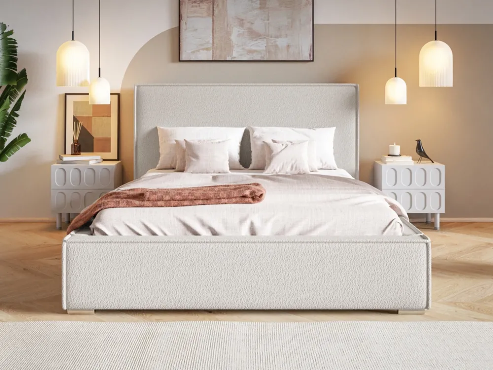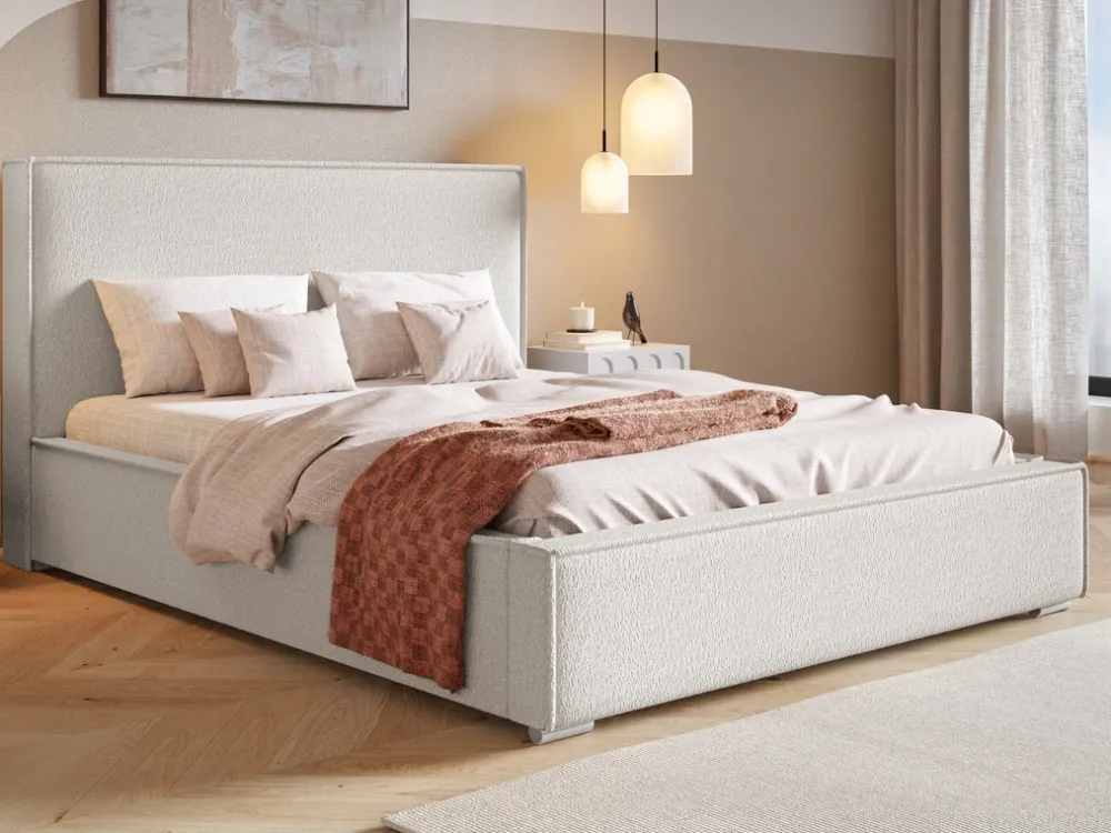 - Klasyczne łóżko do sypialni z wysokim tapicerowanym oparciem. Pozbawione zdobień, prosta forma bez pikowań i przeszyć. W konfiguratorze znajduje się opcja wyboru tkaniny, zmiana wysokości oparcia, wybór nóżek, zmiana stelaża z drewnianego na metalowy.