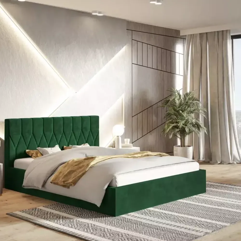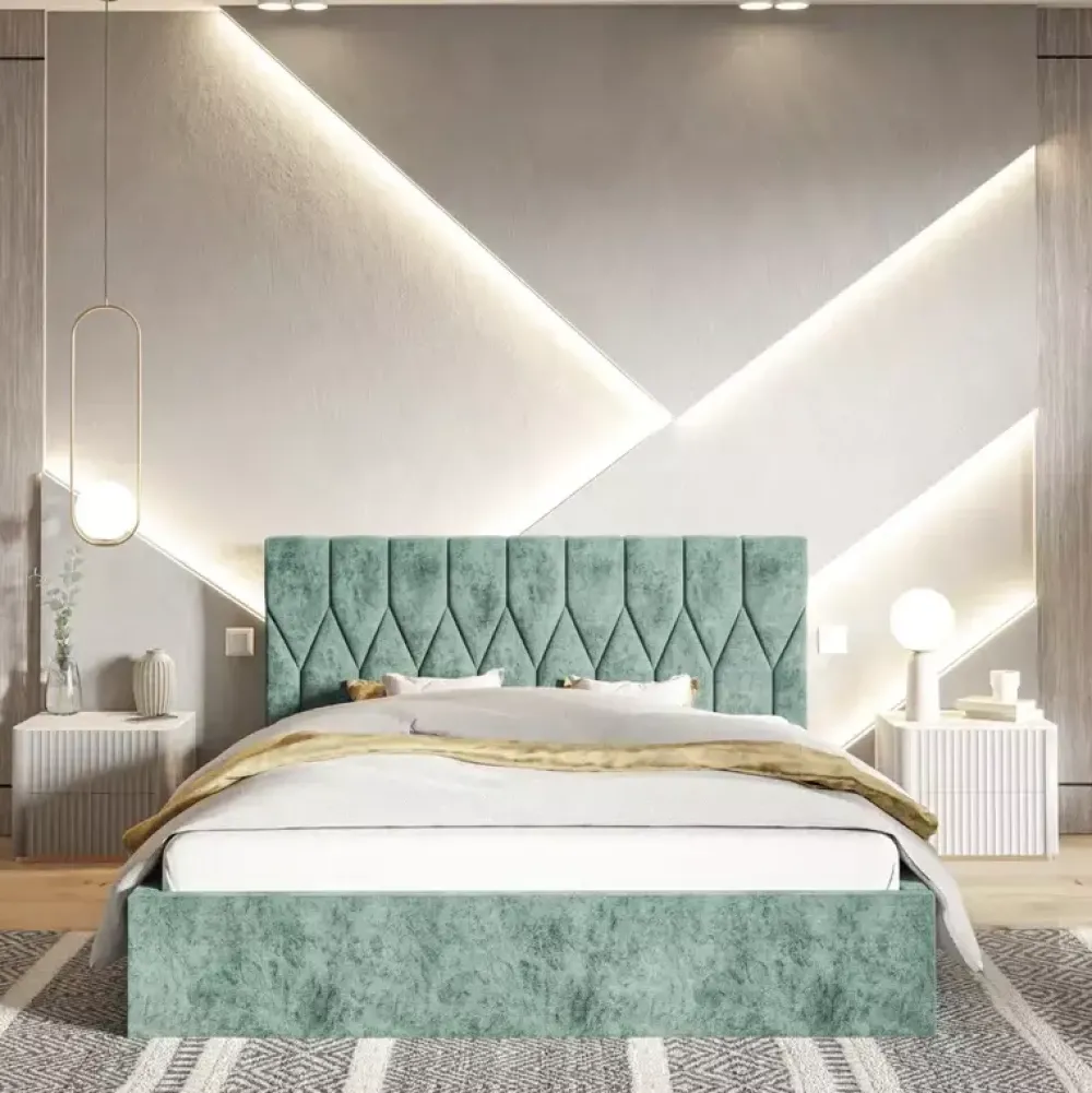 - Konstrukcja tego modelu nada waszej sypialni lekkości oraz przytulnego klimatu. Zagłówek z ozdobnym wzorem będzie ciekawym urozmaiceniem regularnej bryły. Aby idealnie dopasować łóżko do wnętrza, dajemy Wam możliwość wyboru tkaniny z kilkudziesięciu opcji