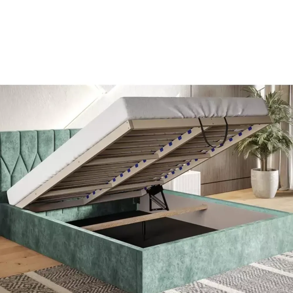 - Opcjonalnie stelaż drewniany za dopłata zmienić można na wersję z ramą wykonaną z metalu, podnoszoną na siłownikach gazowych. W tej wersji stelaż składa się z 36 brzozowych listew sprężynujących. Uchwyt służący do podnoszenia stelaża w kolorze losowym, element niewidoczny. Obciążenie maksymalne to 200 kg.