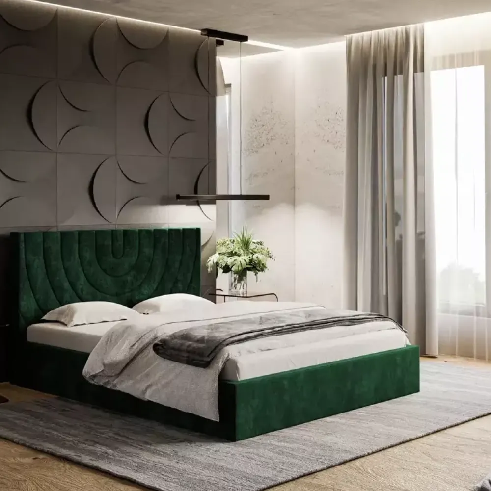 - Łóżko z miękkim tapicerowanym zagłówkiem o wysokości 90 cm, która jest wystarczająca, aby móc wygodnie się oprzeć czytając ulubioną książkę tuż przed snem. W połączeniu z bogatą ofertą dostępnych tkanin będzie świetnym wyborem do Waszej sypialni.