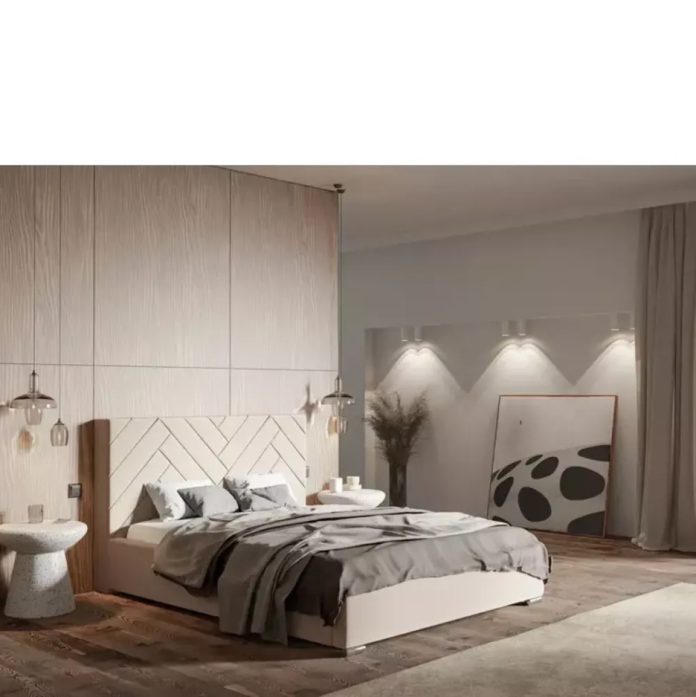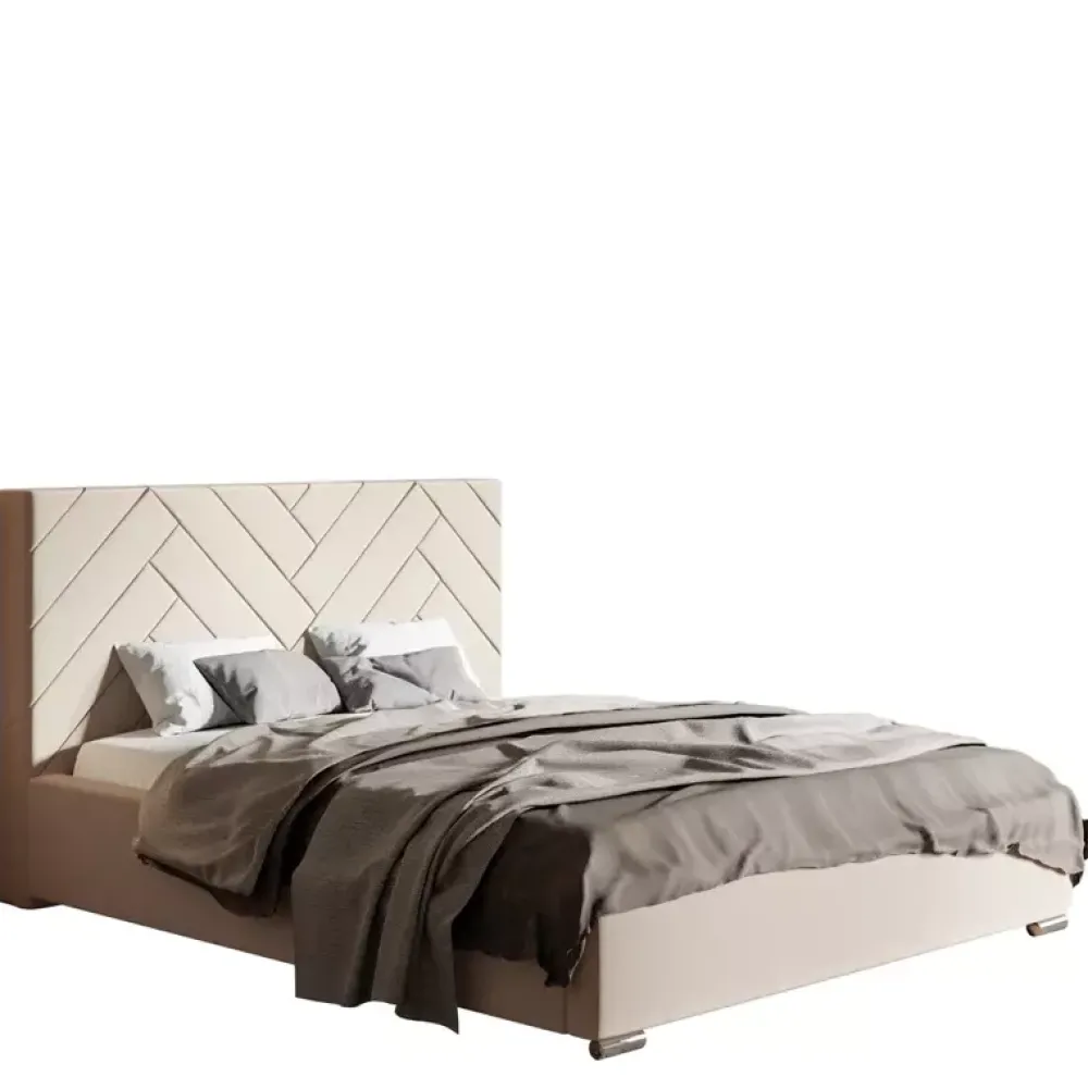 - Łóżko do sypialni z nowoczesnym wzorem jodełki na miękkim oparciu. Dostępne w wielu wariantach kolorystycznych oraz kilku gatunkach tkanin wysokiej jakości. W konfiguratorze znajdą państwo również opcję zmiany stelaża, wybór koloru nóżek, obicie oparcia.