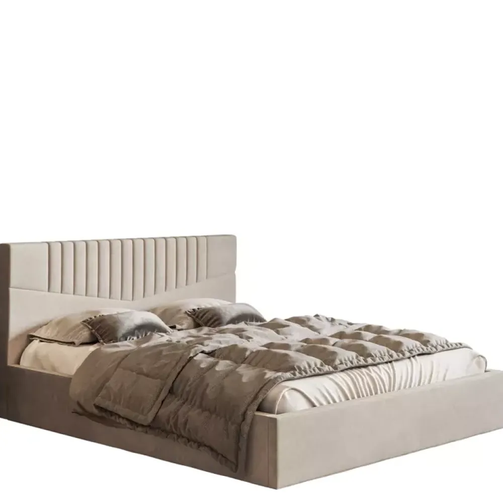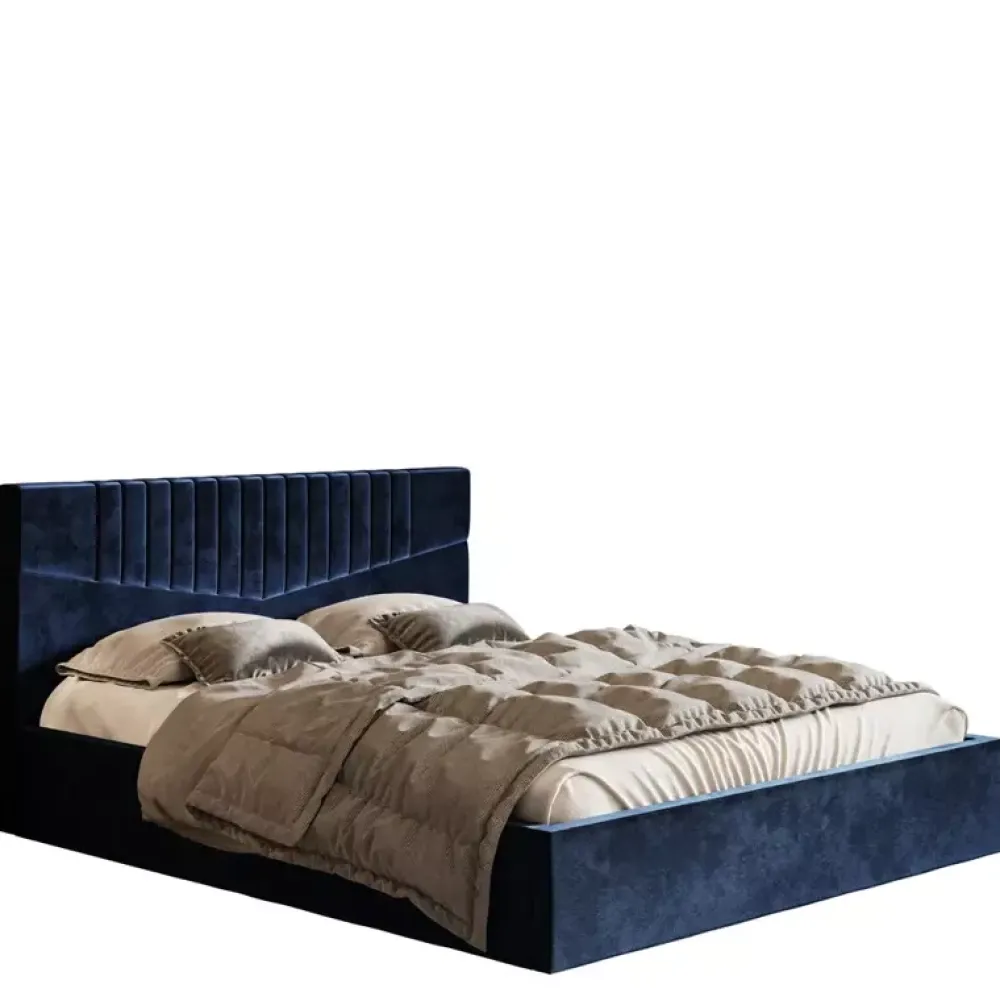 - Łóżko z prostym zagłówkiem udekorowanym prostym wzorem. Konfigurator oferuje wiele opcji personalizacji, między innymi wybór tkaniny, opcję zmiany stelaża z drewnianego na metalowy, czy obicie pleców oparcia w tkaninie identycznej jak całe łóżko.