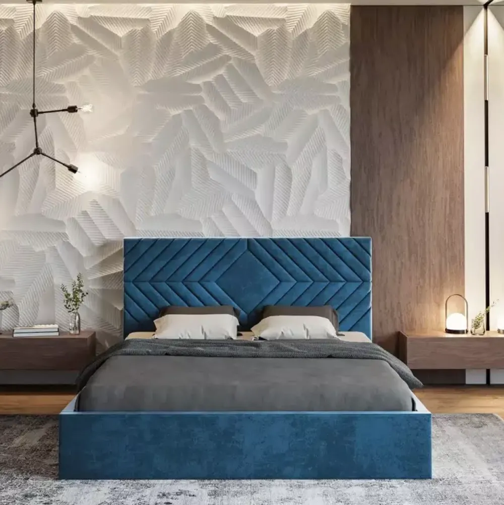 - Łóżko z ekstrawaganckim wzorem na zagłówku, idealnym do wnętrz nowoczesnych, w których dominującą rolę odgrywają geometria i harmonia. Dodatkowymi zaletami będą z pewnością możliwości personalizacji tego modelu dostępne w naszym konfiguratorze.