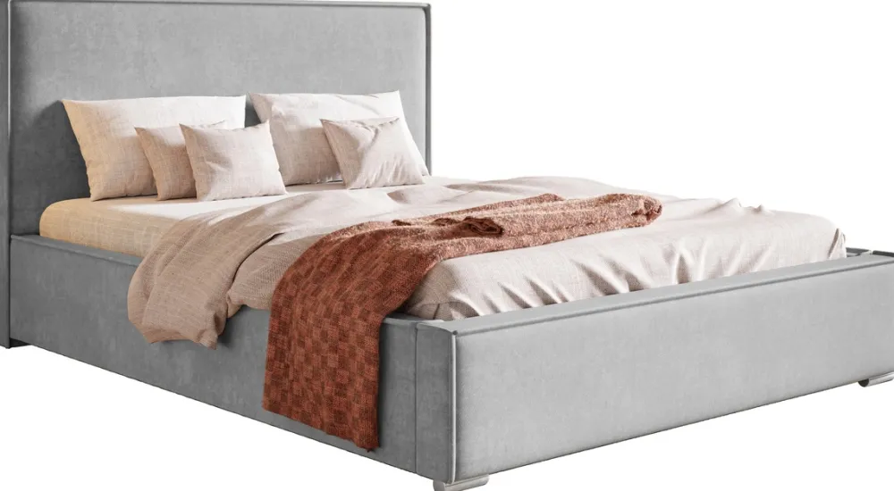 - Klasyczne łóżko do sypialni z wysokim tapicerowanym oparciem. Pozbawione zdobień, prosta forma bez pikowań i przeszyć. W konfiguratorze znajduje się opcja wyboru tkaniny, zmiana wysokości oparcia, wybór nóżek, zmiana stelaża z drewnianego na metalowy.