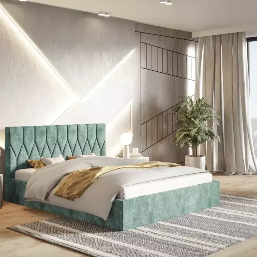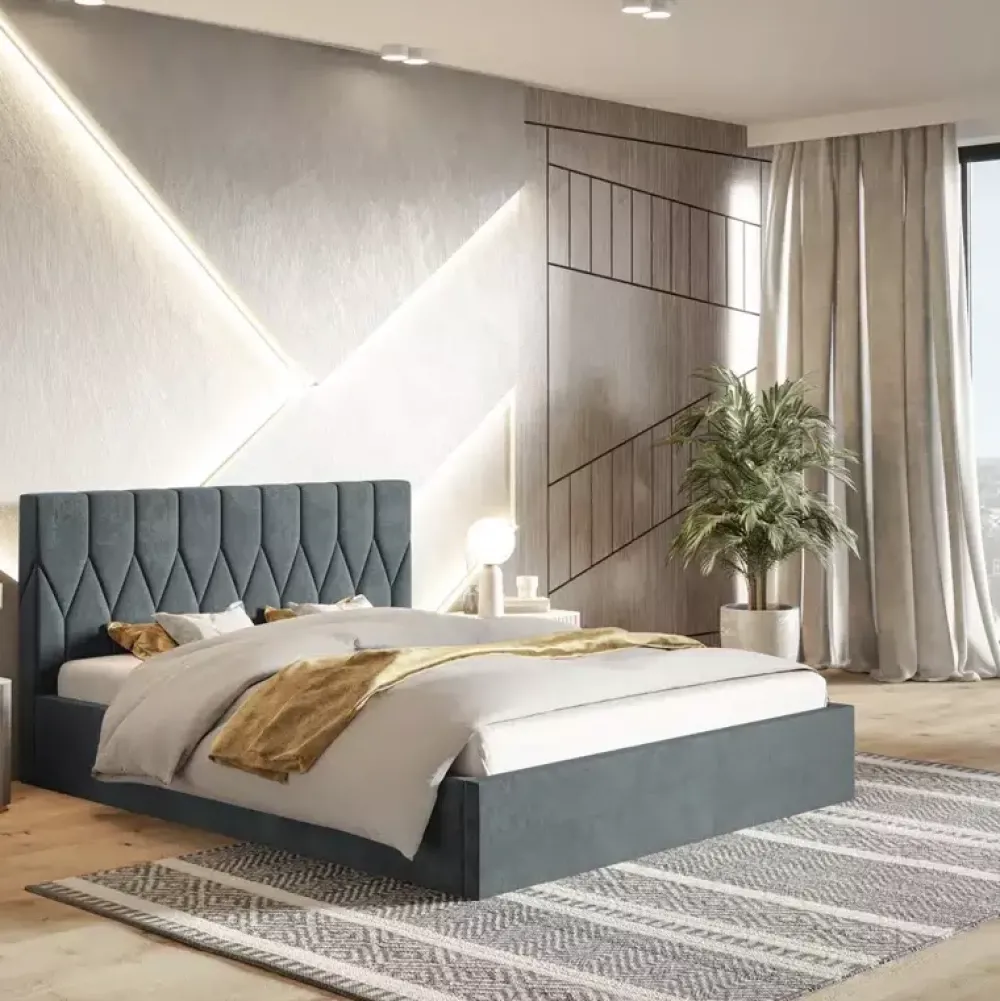- Konstrukcja tego modelu nada waszej sypialni lekkości oraz przytulnego klimatu. Zagłówek z ozdobnym wzorem będzie ciekawym urozmaiceniem regularnej bryły. Aby idealnie dopasować łóżko do wnętrza, dajemy Wam możliwość wyboru tkaniny z kilkudziesięciu opcji