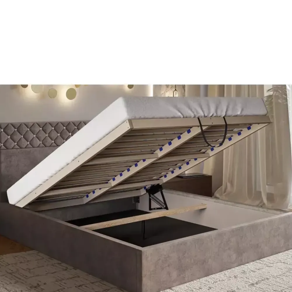 - Opcjonalnie stelaż drewniany za dopłata zmienić można na wersję z ramą wykonaną z metalu, podnoszoną na siłownikach gazowych. W tej wersji stelaż składa się z 36 brzozowych listew sprężynujących. Uchwyt służący do podnoszenia stelaża w kolorze losowym, element niewidoczny. Obciążenie maksymalne to 200 kg.
