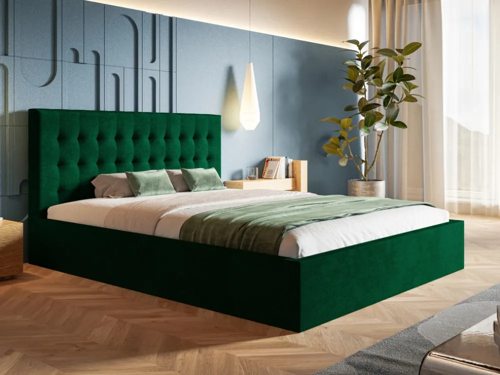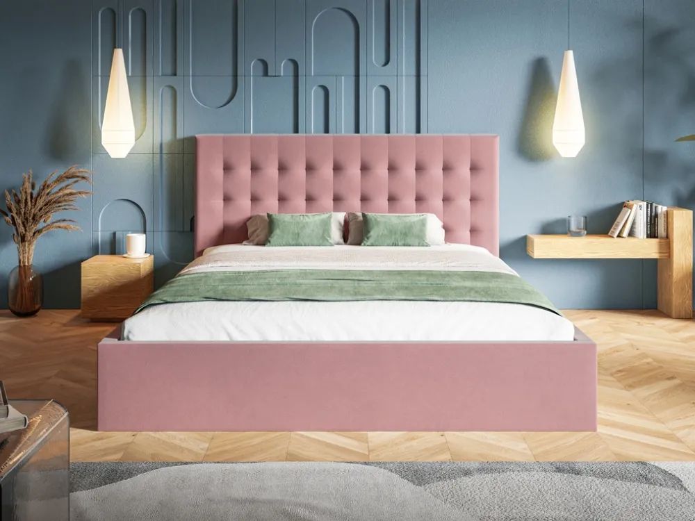- Łóżko dwuosobowe wyposażone w wygodne oparcie, które dodatkowo możemy zmodyfikować pod względem wysokości w zakresie od 80 do 120 cm. Dostępne jest w kilkudziesięciu wariantach kolorystycznych, które znajdziecie w konfiguratorze obok innych opcji.