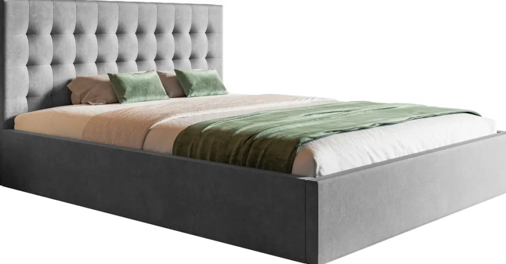 - Łóżko dwuosobowe wyposażone w wygodne oparcie, które dodatkowo możemy zmodyfikować pod względem wysokości w zakresie od 80 do 120 cm. Dostępne jest w kilkudziesięciu wariantach kolorystycznych, które znajdziecie w konfiguratorze obok innych opcji.