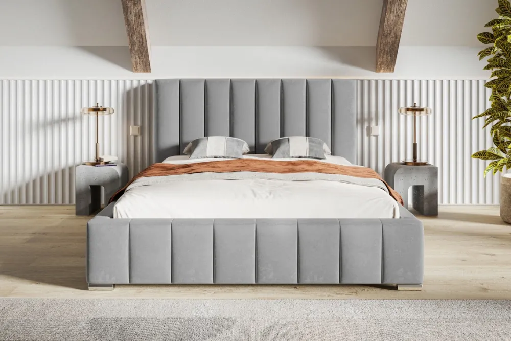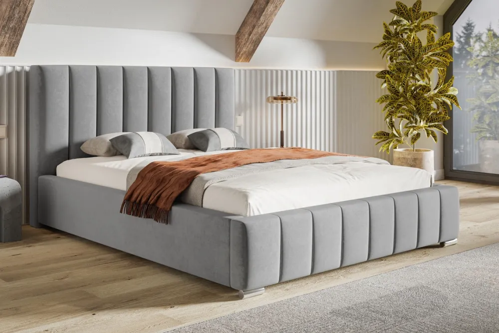 Łóżko oparte jest na nóżkach o wysokości 4 cm. Nadaje to meblowi lekkości. Niewysokie nóżki sprawiają, że łóżko wygląda nowocześnie i subtelnie, nie przytłaczając w przestrzeni sypialni.