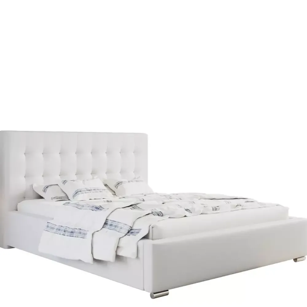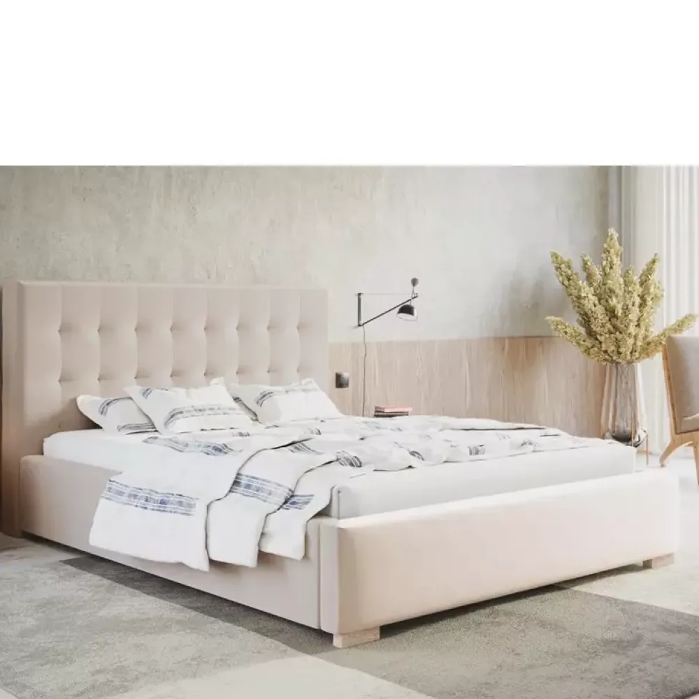 - Łóżko tapicerowane 140 z wysokim zagłówkiem. Pod stelażem znajduje się obszerny pojemnik na pościel. W konfiguratorze znajdą państwo kilkadziesiąt wariantów kolorystycznych, możliwość zmiany wysokości zagłówka, opcję wymiany stelaża z drewna na metalowy.