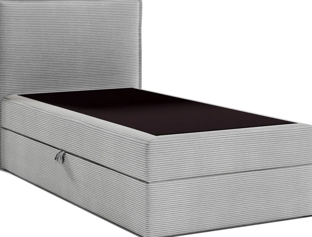 Łóżko kontynentalne o powierzchni spania 100×200 cm MALIBU to perfekcyjny wybór do pokoju dziecka, oferujący doskonałe połączenie nowoczesnego designu i funkcjonalności. Tapicerowane wysokiej jakości sztruksową tkaniną Poso, łóżko charakteryzuje się wyjątkową miękkością oraz elegancką, prążkowaną strukturą, która nadaje mu unikalny, stylowy wygląd. Sztruks jest materiałem zarówno wytrzymałym, jak i przyjemnym w dotyku, dzięki czemu idealnie sprawdza się w dziecięcych wnętrzach, zapewniając komfort i trwałość przez długie lata użytkowania.