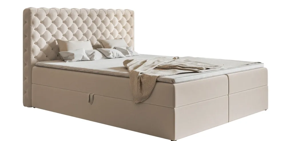 - Łóżko w standardzie wyposażone jest w materac o wysokości 19 cm oparty na sprężynach bonell. Które są odporne na odkształcenia oraz dobrze podpierają ciało podczas snu. Dodatkowo łóżko posiada możliwość doposażenia w sprężyny pocket, które zwiększają komfort snu.