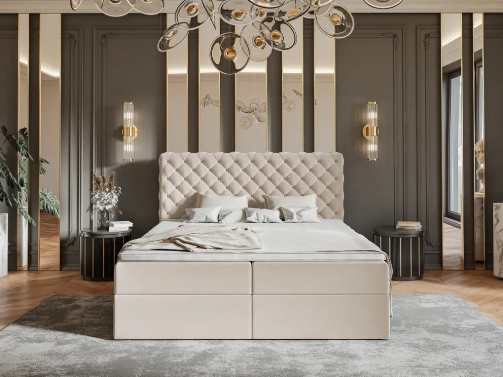 Gwiazdą naszej konstrukcji jest pikowany zagłówek, który nie tylko dodaje elegancji, ale również zapewnia wygodne oparcie podczas wieczornych seansów filmowych czy porannych chwil z książką. Pikowania dodają głębi i charakteru, czyniąc łóżko nie tylko meblem, ale również elementem dekoracyjnym.