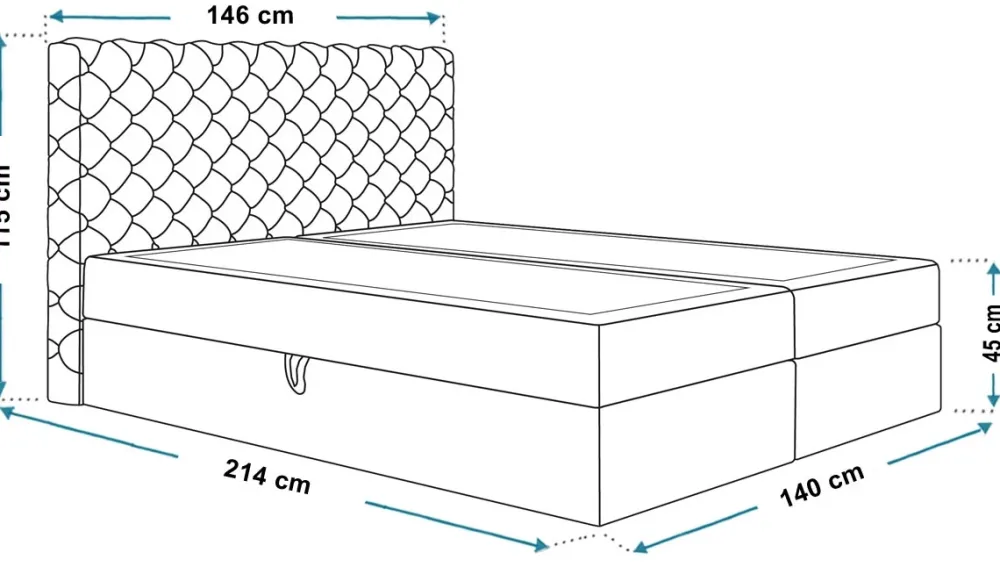 - Łóżko w standardzie wyposażone jest w materac o wysokości 19 cm oparty na sprężynach bonell. Które są odporne na odkształcenia oraz dobrze podpierają ciało podczas snu. Dodatkowo łóżko posiada możliwość doposażenia w sprężyny pocket, które zwiększają komfort snu.