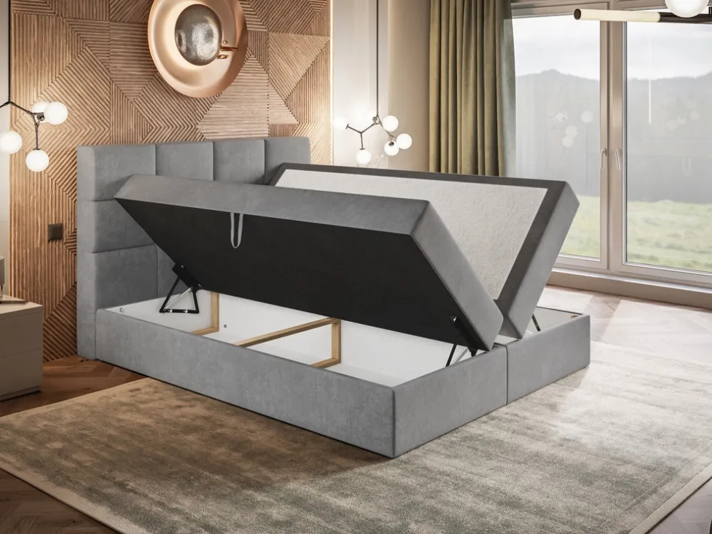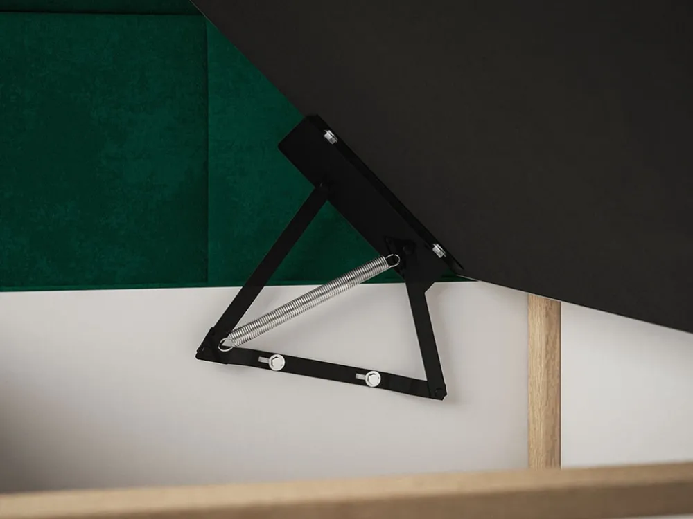 Innowacyjny system sprężynowy automatycznie ułatwia dostęp do pojemnika na pościel, czyniąc jego otwieranie i zamykanie niezwykle łatwym i komfortowym. To wygoda, którą docenisz przy każdym użyciu.