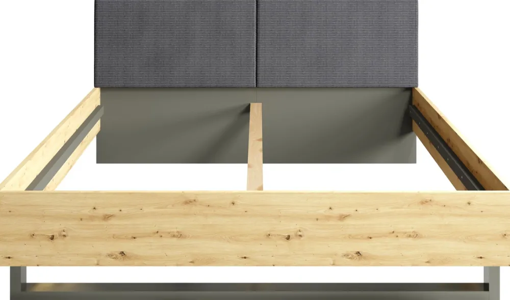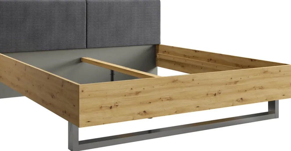 - Łóżko dwuosobowe RUSTICA 160×200 w kolorze grafit/dąb artisan z tapicerowanym zagłówkiem w tkaninie Ontario 19. Solidna konstrukcja z płyty laminowanej 16 mm, praktyczna wysokość skrzyni 46 cm i przytulna stylistyka tworzą idealną sypialnię.