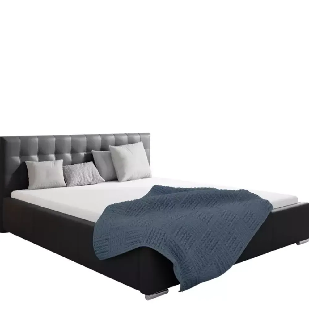 - Łóżko do sypialni z prostym symetrycznym wzorem pikowania na zagłówku. Łóżko dostępne w wielu gatunkach oraz kolorach tkanin. Opcjonalnie z pojemnikiem na pościel.