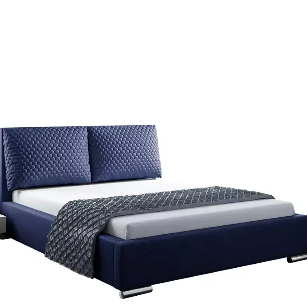 - Komfortowe łóżko do sypialni o powierzchni spania 200×200 i wymiarach 222×218 wykonane w tkaninie w granatowym kolorze. Dostępne w wersji z pojemnikiem na pościel. Łóżko dostępne w różnych wariantach kolorystycznych.