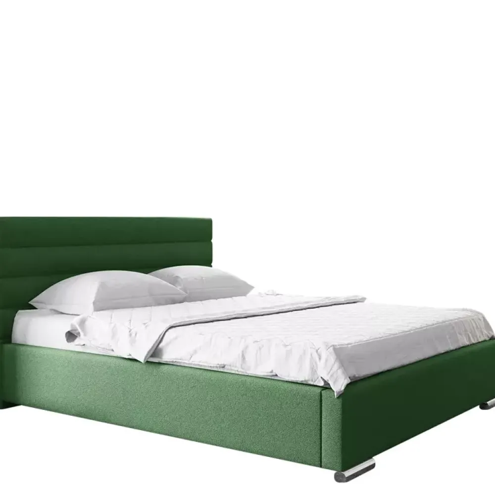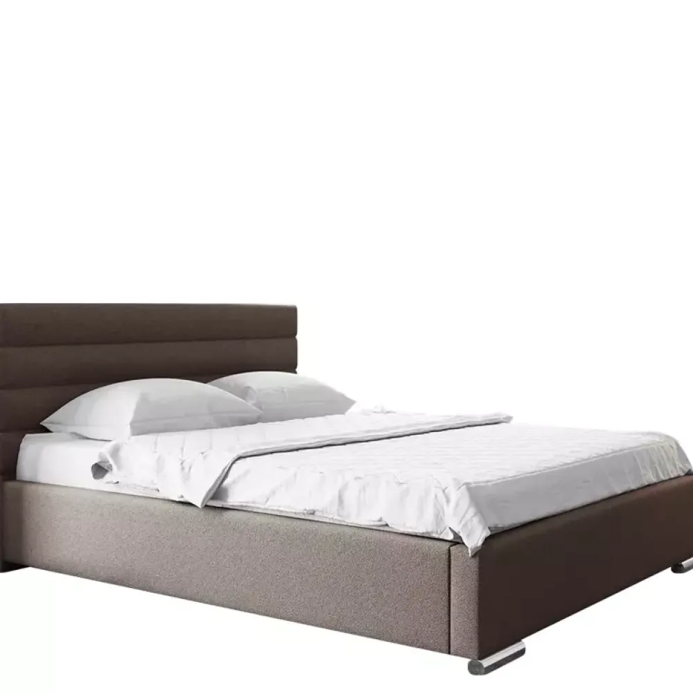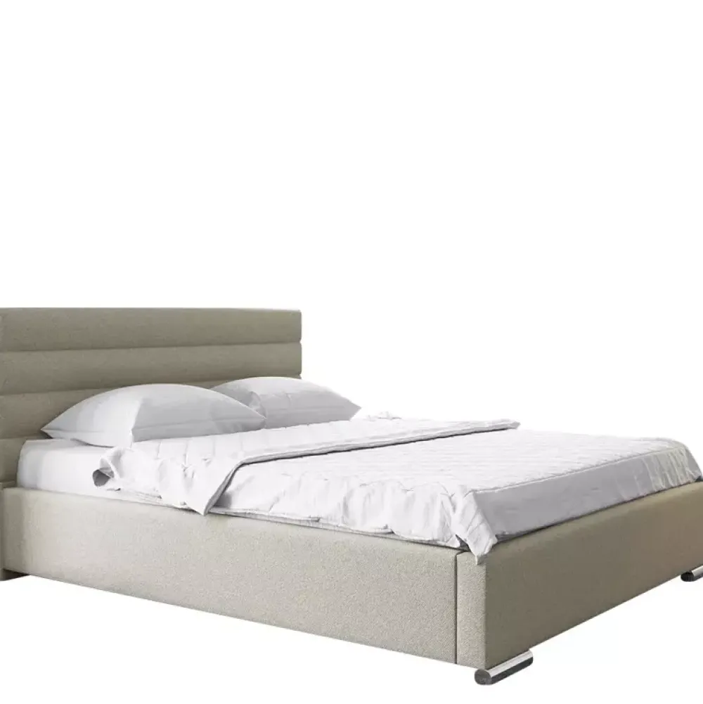 - Łóżko do sypialni wykonane z tkaniny z powłoką hydrofobową zapobiegającą przed szybkim wsiąkaniem płynów. Klasyczny zagłówek z poziomymi przeszyciami. Powierzchnia spania o wymiarach 180×200 cm.