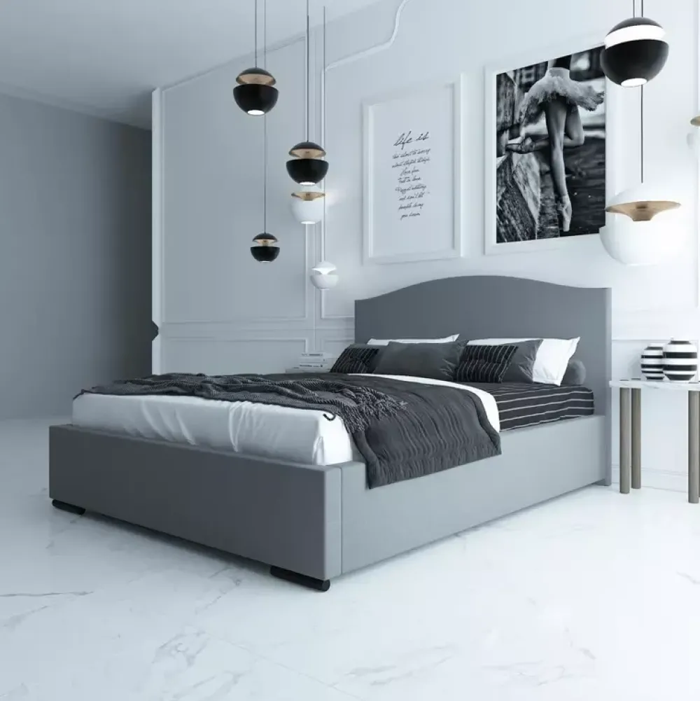 - Łóżko tapicerowane z prostym zagłówkiem, o delikatnie profilowane górnej krawędzi. Dostępne w trzech wariantach 140,160 oraz 180 cm, a także kilkudziesięciu wariantach kolorystycznych.