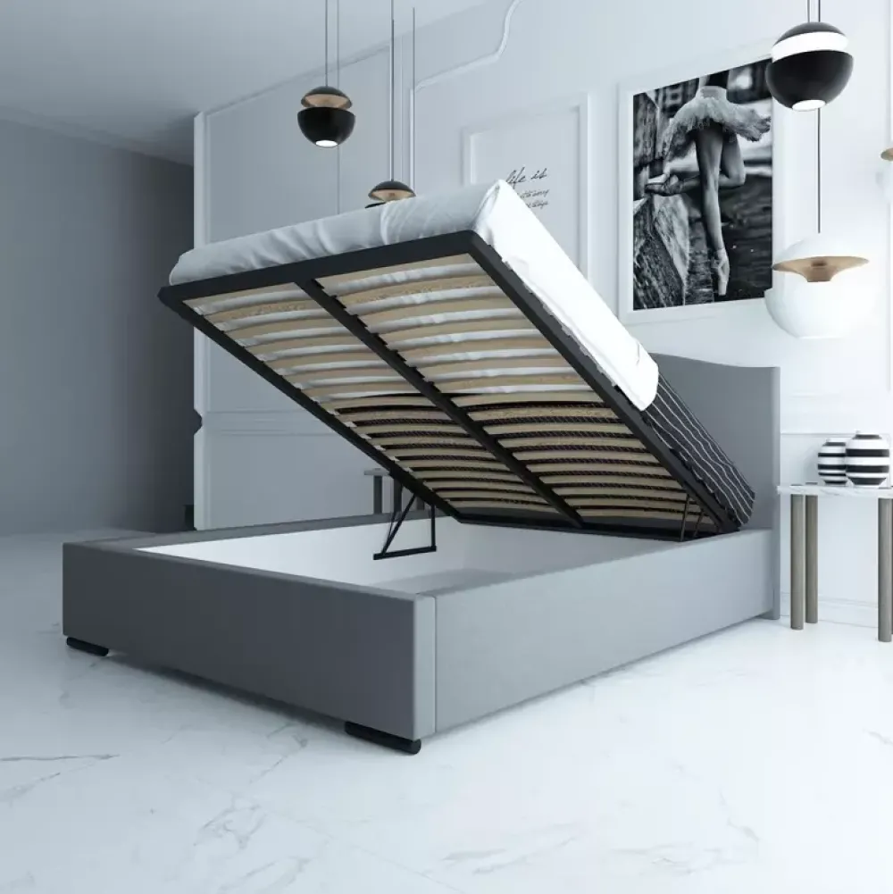 - Stelaż metalowy z mechanizmem ułatwiającym dostęp do pojemnika na pościel przy pomocy dwóch siłowników gazowych.