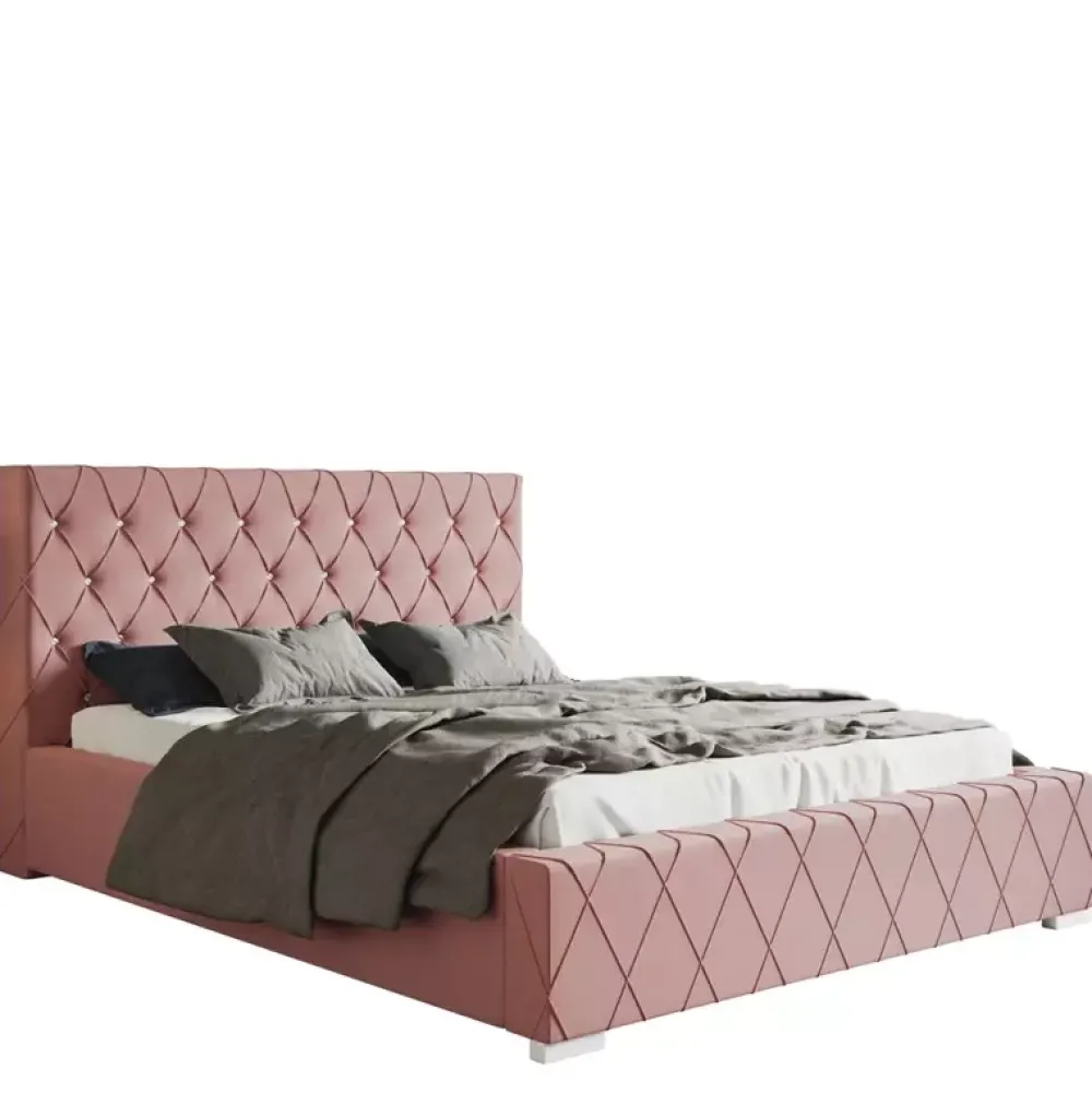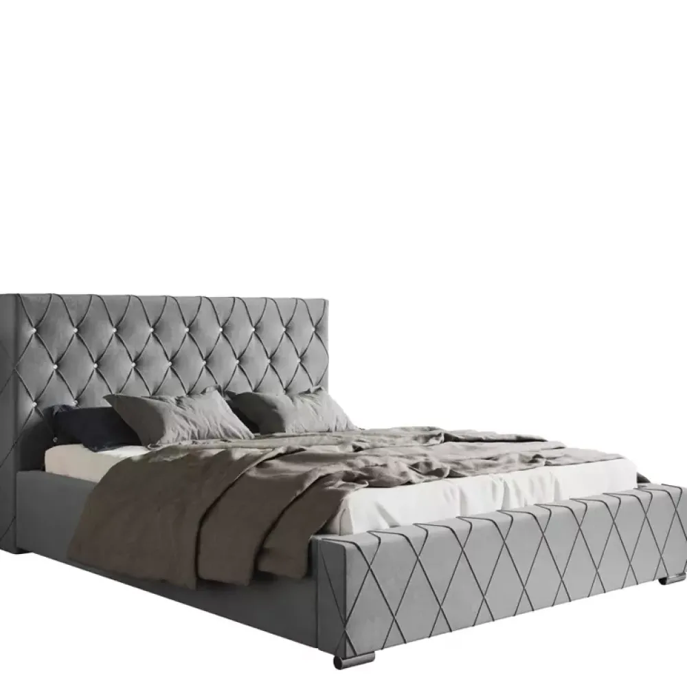 - Stylowe łóżko tapicerowane 180×200 cm z miękkim oparciem wykończonym w subtelny wzór caro z eleganckimi zakładkami. Wysokość zagłówka, rodzaj stelaża, kolor obicia tkanina można wybrać spośród opcji dostępnych w naszym konfiguratorze „Dopasuj i kup”.