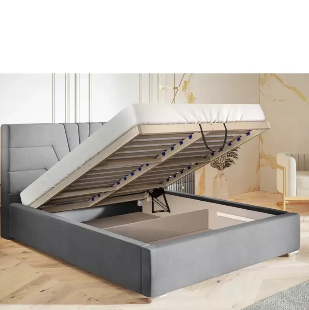 - Nowoczesne łóżko tapicerowane wykonane z materiałów wysokiej jakości. Dostępne w wielu wariantach kolorystycznych różnych gatunków tkanin. Wzór umieszczony na oparciu wykonywany jest w technologii 3D przy użyciu specjalistycznych maszyn.