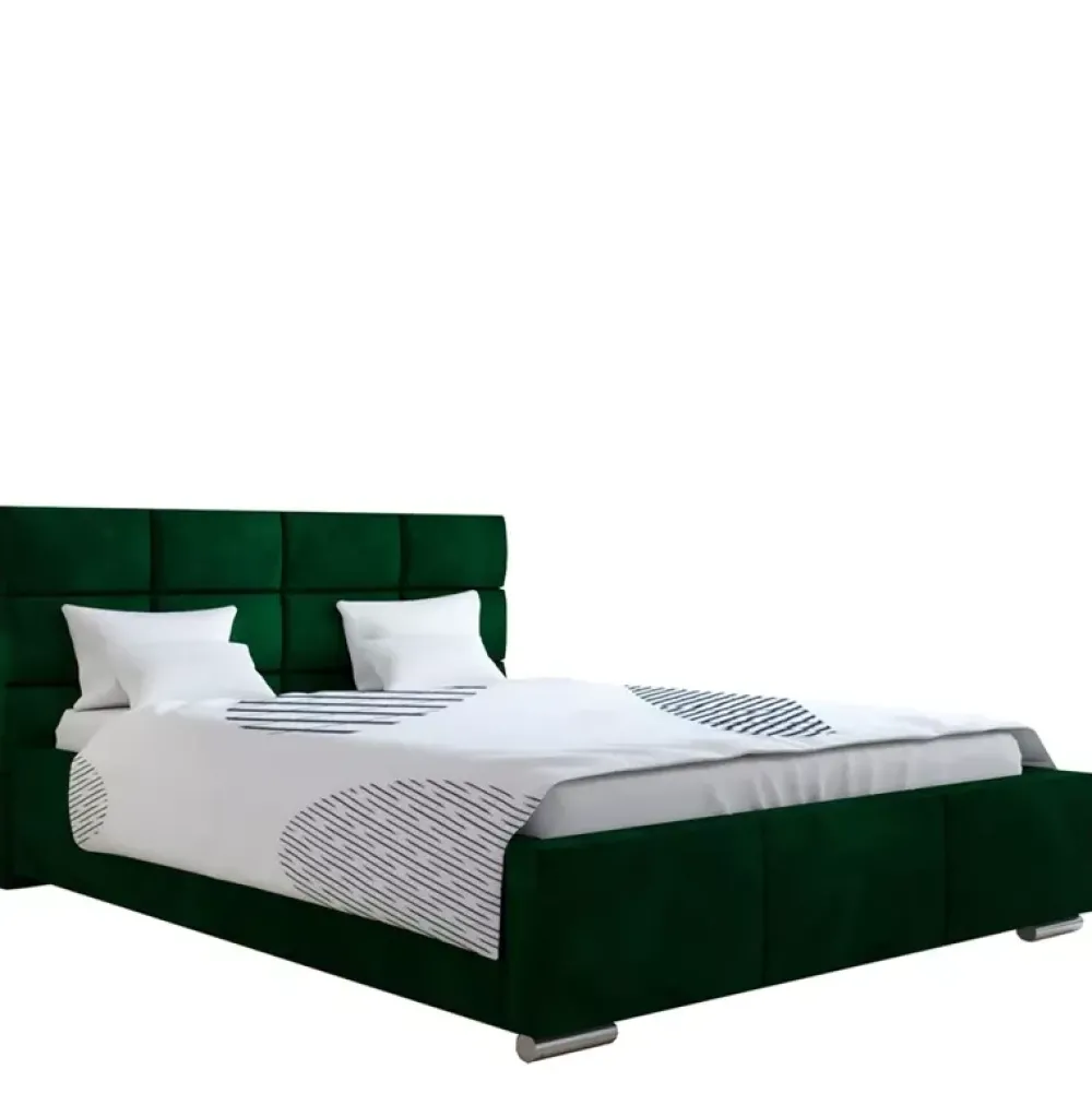 - Łóżko do nowoczesnej sypialni z prostym wzorem na wysokim zagłówku. Wyposażone w duży pojemnik na pościel umieszczony pod stelażem. W konfiguratorze znajdą państwo dostępne tkaniny, opcję zmiany stelaża, zmianę wysokości zagłówka oraz kolor nóżek.