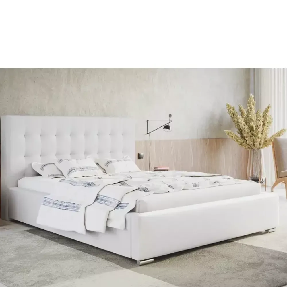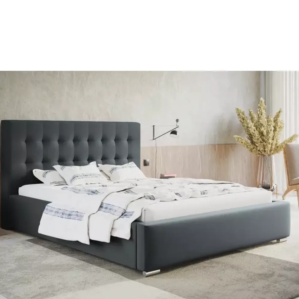 - Łóżko tapicerowane 180 z wysokim zagłówkiem. Pod stelażem znajduje się obszerny pojemnik na pościel. W konfiguratorze znajdą państwo kilkadziesiąt wariantów kolorystycznych, możliwość zmiany wysokości zagłówka, opcję wymiany stelaża z drewna na metalowy.