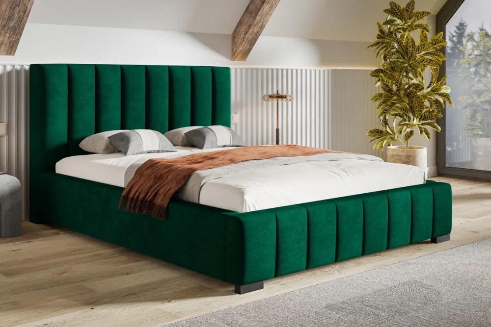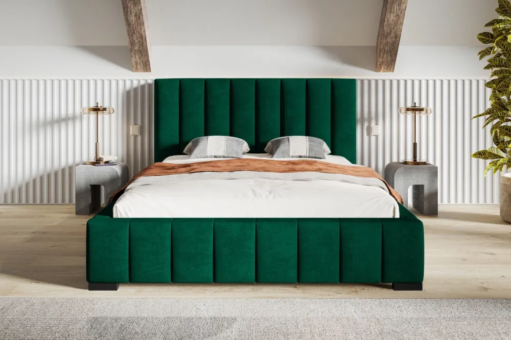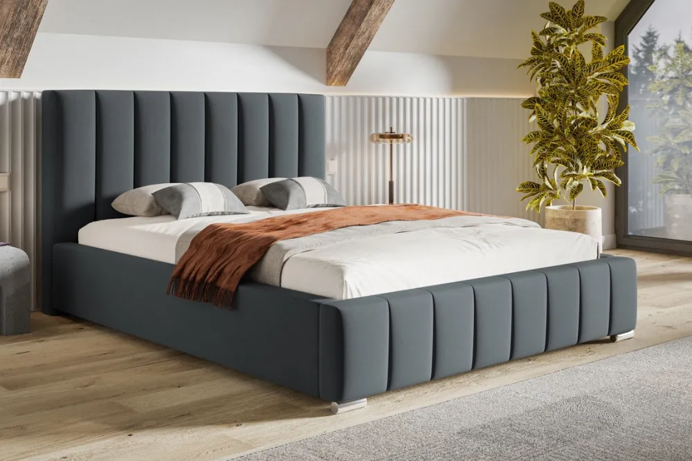 Łóżko tapicerowane SENDY o wymiarach 180×200 cm to elegancki i funkcjonalny mebel, który pasuje do wielu aranżacji sypialni. Dostępność w różnych kolorach i tkaninach pozwala na idealne dopasowanie do indywidualnych preferencji oraz stylu pomieszczenia, od nowoczesnych po bardziej klasyczne.