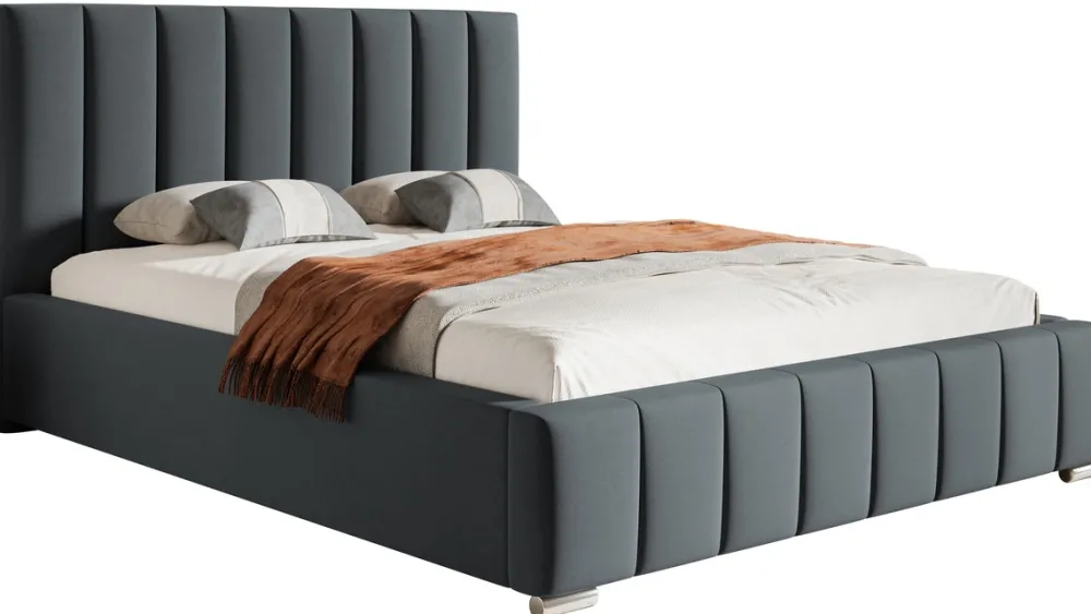 - Zagłówek razem z czołem łóżka posiadają ozdobne przeszycia, nadające łóżku nowoczesny styl.