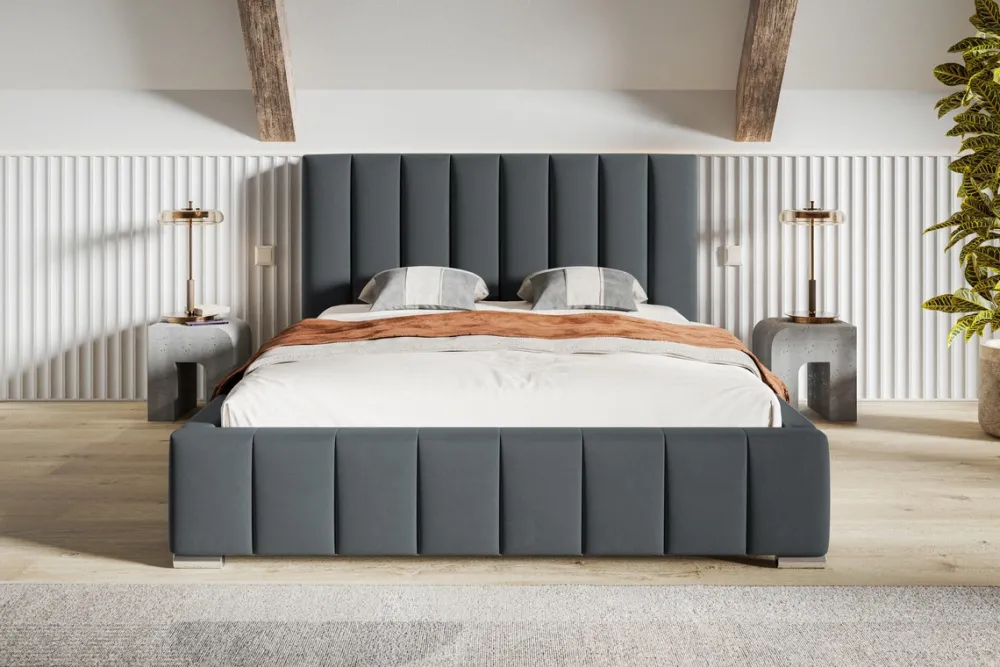 Zagłówek łóżka przyciąga uwagę swoim wykończeniem – jest przeszyty ozdobnym wzorem, który dodaje łóżku charakteru i elegancji. Może stanowić piękny akcent dekoracyjny w sypialni, a także zapewnia wygodne oparcie podczas czytania książki czy oglądania telewizji w łóżku.