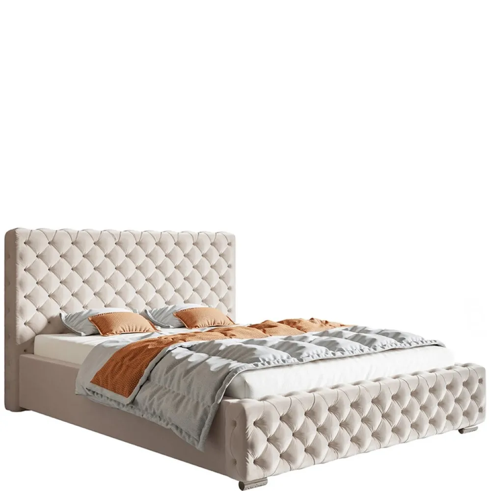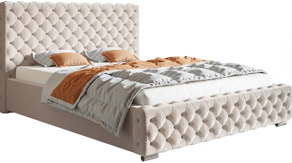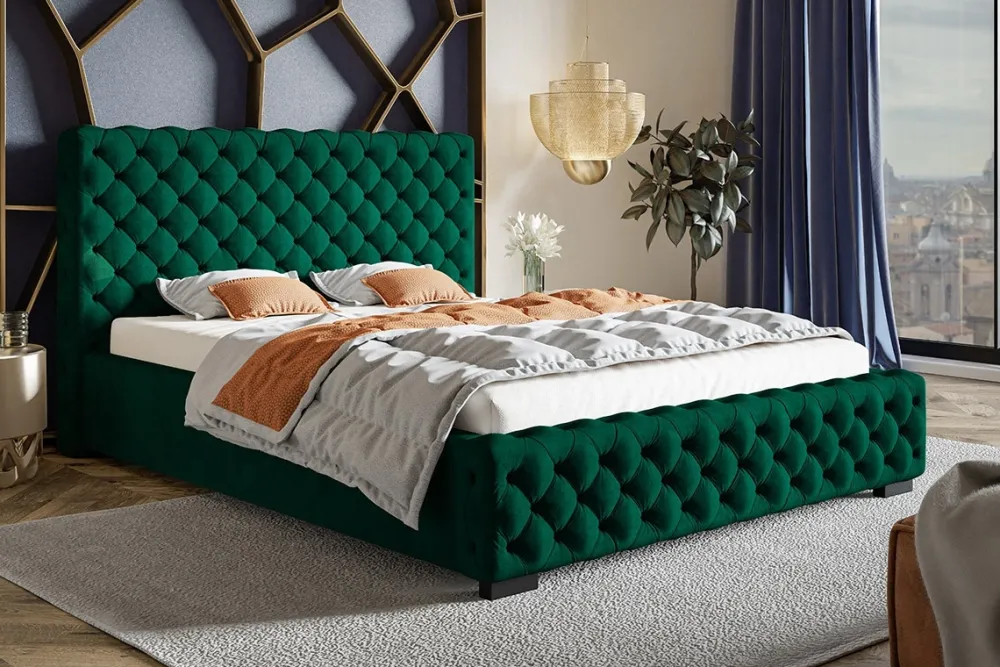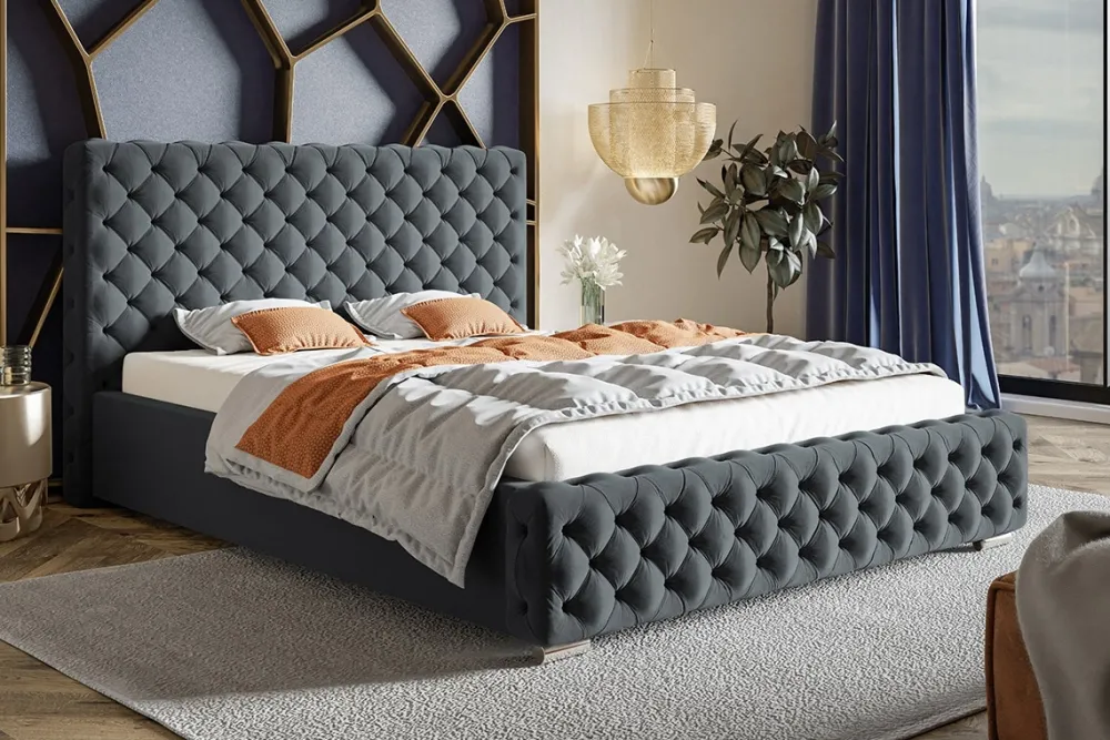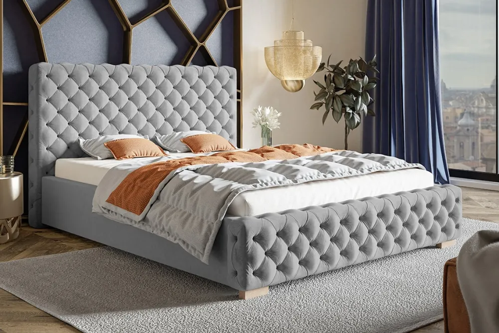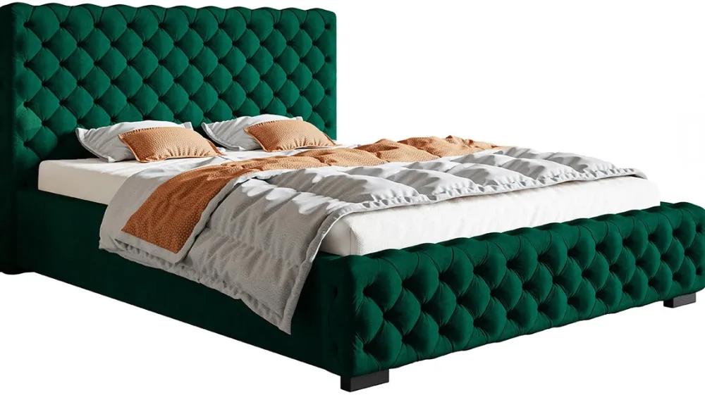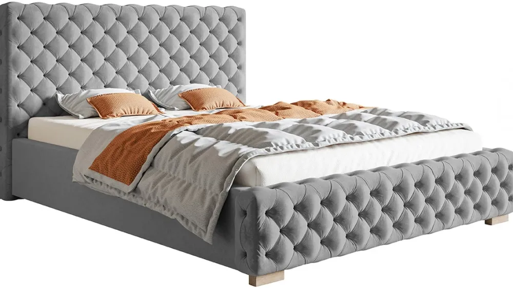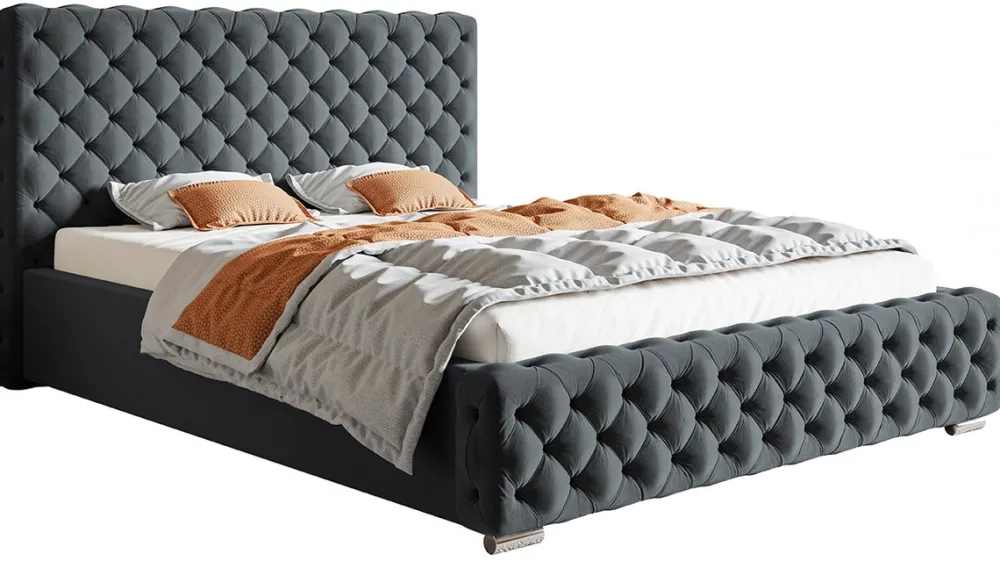 - Wygodne łoże do sypialni z pikowanym zagłówkiem i korpusem o powierzchni spania 180×200 cm. Wysokość zagłówka modyfikować w konfiguratorze, podobnie jak rodzaj stelaża, obicie oparcia, czy kolor nóżek.