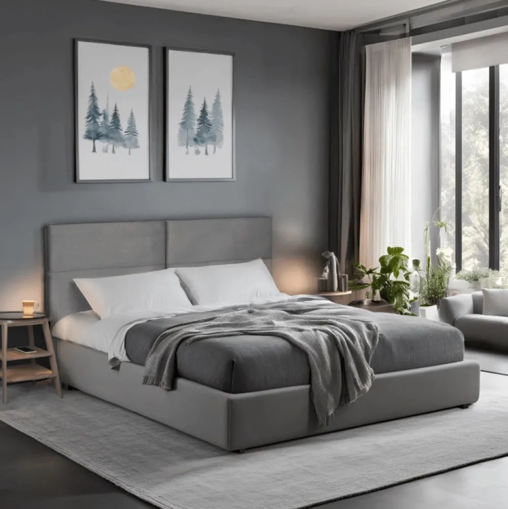 Łóżko tapicerowane do sypialni TAVONE 160×200 to połączenie nowoczesnego designu z wygodą, której potrzebujesz każdego dnia. Pokryte przyjemną w dotyku tkaniną welurową w odcieniu szarości, stanie się stylowym centrum Twojej sypialni. Solidna konstrukcja i komfortowe wezgłowie zapewniają wygodę zarówno podczas snu, jak i wieczornego relaksu z książką czy serialem.