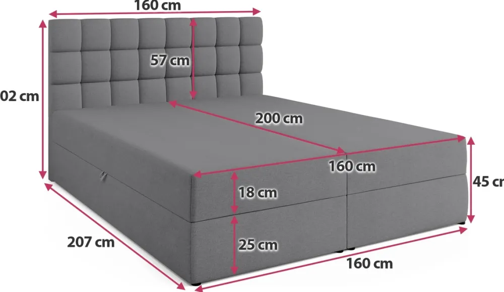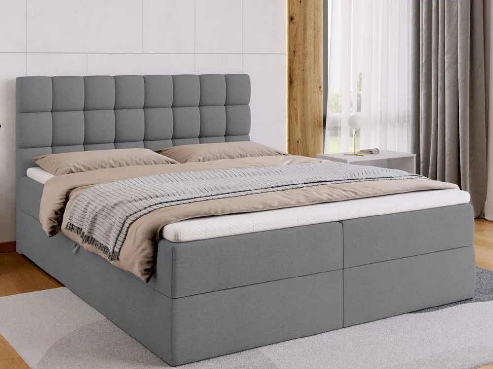 Zadbaj o wyjątkowy komfort snu i stylowy wygląd swojej sypialni dzięki łóżku kontynentalnemu o powierzchni spania 160×200 cm. To idealny wybór dla osób ceniących sobie wygodę oraz praktyczne rozwiązania. Zastosowanie sprężyn bonell w połączeniu z pianką PUR zapewnia odpowiednie podparcie dla ciała, a dwa pojemniki na pościel z wygodnym, sprężynowym automatem rozkładania ułatwiają codzienne użytkowanie.