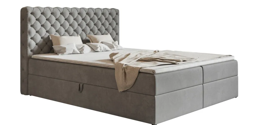 - Łóżko w standardzie wyposażone jest w materac o wysokości 19 cm oparty na sprężynach bonell. Które są odporne na odkształcenia oraz dobrze podpierają ciało podczas snu. Dodatkowo łóżko posiada możliwość doposażenia w sprężyny pocket, które zwiększają komfort snu.
