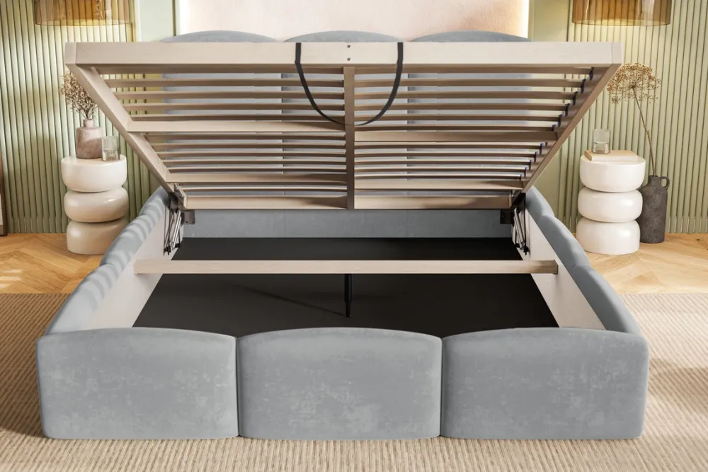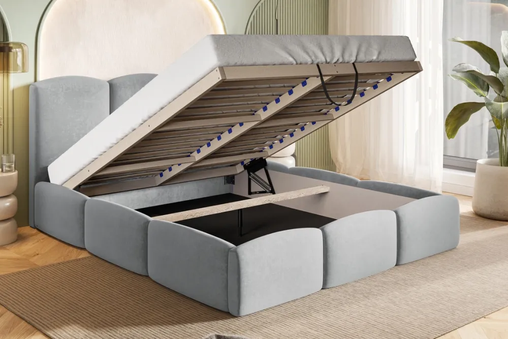 Tapicerowane łóżko 180×200 cm SEPERO zostało wyposażone w praktyczny pojemnik na pościel, który pomoże Ci zorganizować przestrzeń w sypialni. Dzięki podnośnikom otwieranie pojemnika jest niezwykle łatwe i lekkie, co pozwala na szybki dostęp do przechowywanych rzeczy bez wysiłku.