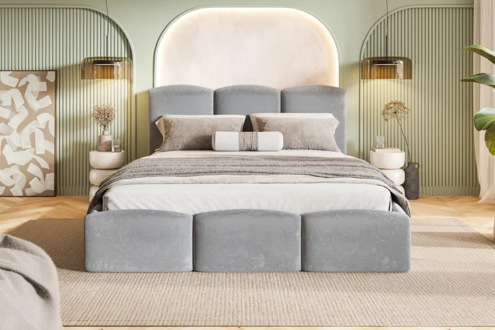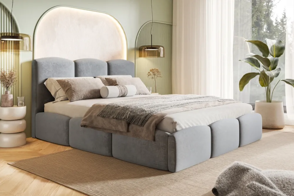 Łóżko tapicerowane można dostosować do indywidualnych preferencji dzięki szerokiej gamie tkanin i kolorów. Bez względu na to, czy marzysz o minimalistycznym wnętrzu, czy o sypialni w stylu glamour, SEPERO będzie pasować idealnie, tworząc atmosferę przytulności i elegancji.