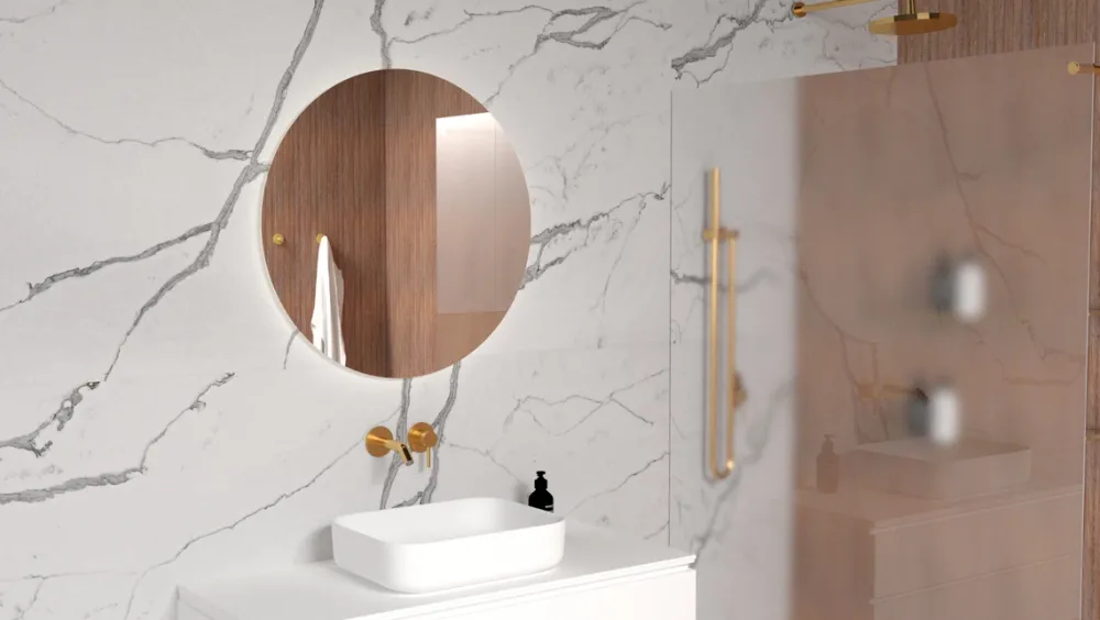 Zimna, biała barwa podświetlenia LED zapewnia wyraźne i naturalne oświetlenie, które doskonale sprawdzi się podczas codziennej pielęgnacji. Obsługa odbywa się za pomocą nowoczesnej czujki zbliżeniowej – wystarczy jeden gest, aby aktywować światło, co gwarantuje maksymalną wygodę i higienę użytkowania.