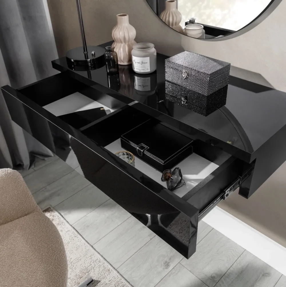 Jego nowoczesny design, połączony z eleganckim czarnym połyskiem, sprawia, że lustro to jest nie tylko praktycznym elementem wyposażenia, ale także wyjątkowym dodatkiem, który dodaje charakteru i stylu każdemu wnętrzu. Bez względu na to, czy jest to sypialnia utrzymana w stonowanych barwach, czy pełna energii i kolorów przestrzeń, lustro to z pewnością będzie idealnym dodatkiem, podkreślającym indywidualny styl każdej sypialni.