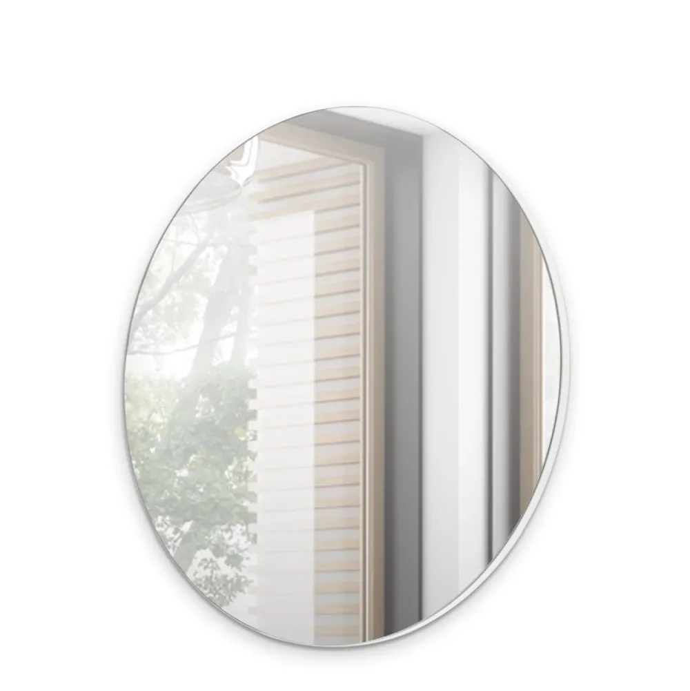 Lustro prezentuje okrągły kształt o wymiarach 70 cm na 70 cm, co nadaje mu uniwersalny i ponadczasowy charakter. Umieszczone jest na solidnej, 16-mm płycie w intensywnym odcieniu białego połysku. Ta biała, lśniąca powierzchnia dodaje lekkości i jasności całej konstrukcji, tworząc efektowny kontrast z lustrzaną powierzchnią.