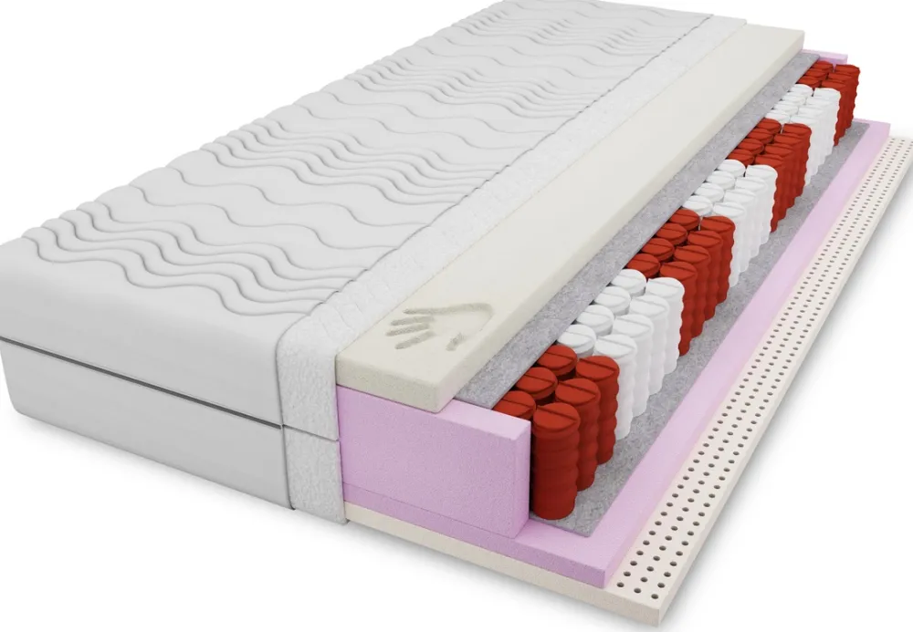 Między warstwami pinki PUR znajdują się setki sprężyn kieszeniowych (Na jednym m2 materaca znajdują się średnio około 262 sprężyny). Każda sprężyna w materacu kieszonkowym jest umieszczona w oddzielnej kieszonce, co pozwala jej na niezależne działanie – uginają się z nich tylko te, na które działa nacisk. Pozwala im to dobrze się dopasować do kształtu ciała, zapewniając równomierne wsparcie i pomagając w utrzymaniu prawidłowego wyrównania kręgosłupa. Sprężyny pocket oferują też doskonałe wsparcie punktowe, ponieważ mogą precyzyjnie reagować na nacisk w różnych obszarach. Wszystko to przełoży się na pełny relaksu sen i pozbawione bólu pleców, czy szyi poranki.