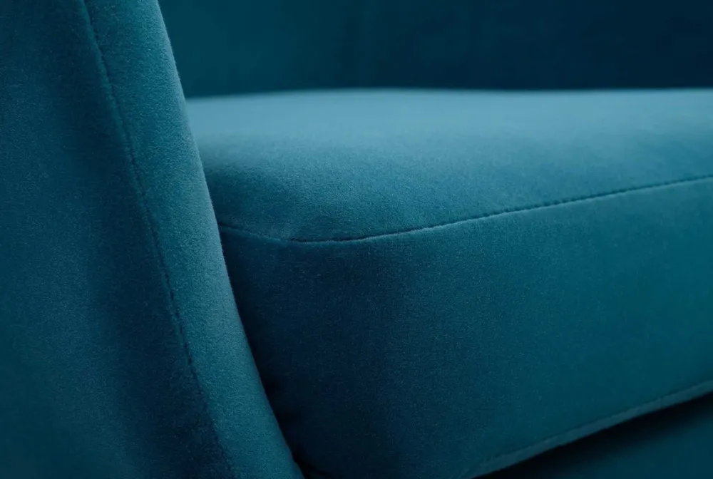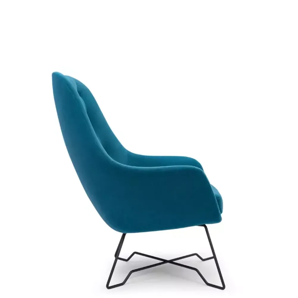 Fotel FLIP to elegancki model o niebanalnej bryle. Wykonany na stelażu z włókna szklanego oraz sklejki, co sprawia, że jest to bardzo wytrzymała konstrukcja. Całość obłożono pianką i obito przyjemną welurową tkaniną. Siedzisko wykonano z pianki o wysokiej sprężystości obitej tkaniną. Dodatkowe pikowanie oparcia nadaje całości eleganckiego wyglądu a metalowa rama, na której osadzono fotel, podkreśla jego nowoczesny charakter. FLIP to propozycja dla ludzi ceniących sobie nowoczesność i wygodę.