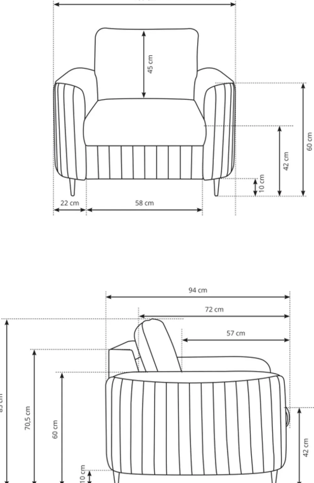 - Fotel posiada tapicerowane plecy, co oznacza że można ustawić fotel nawet pośrodku salonu.