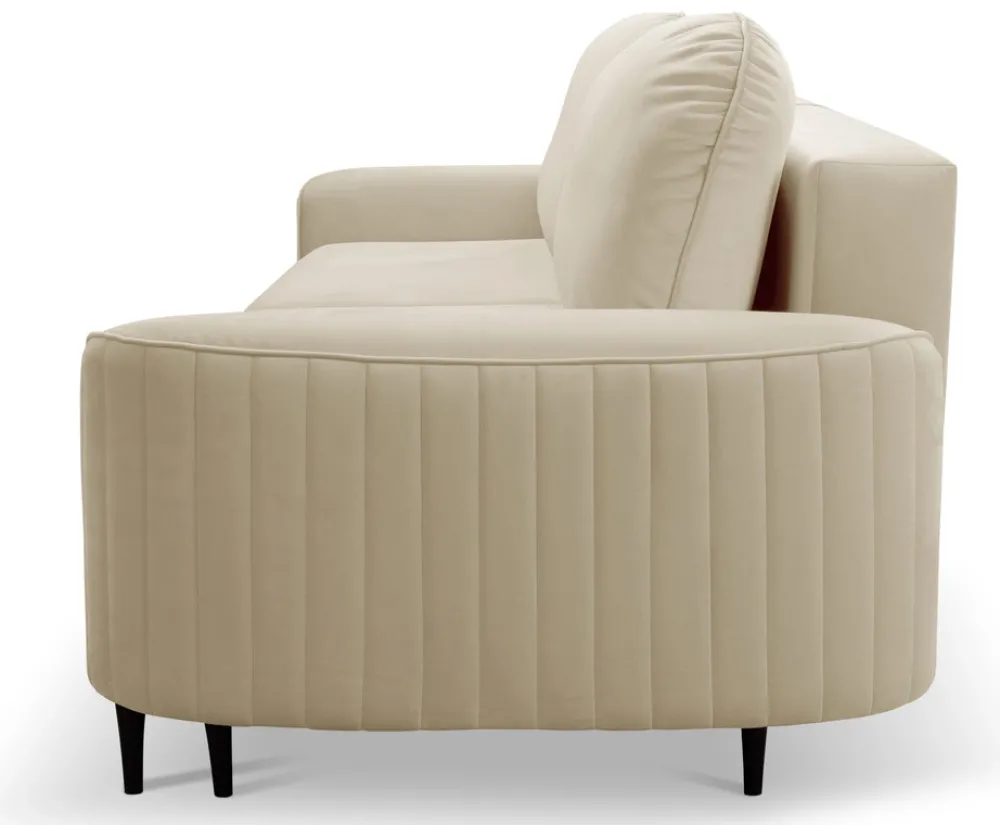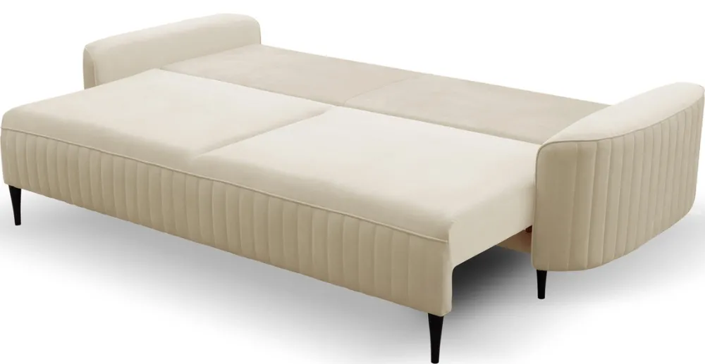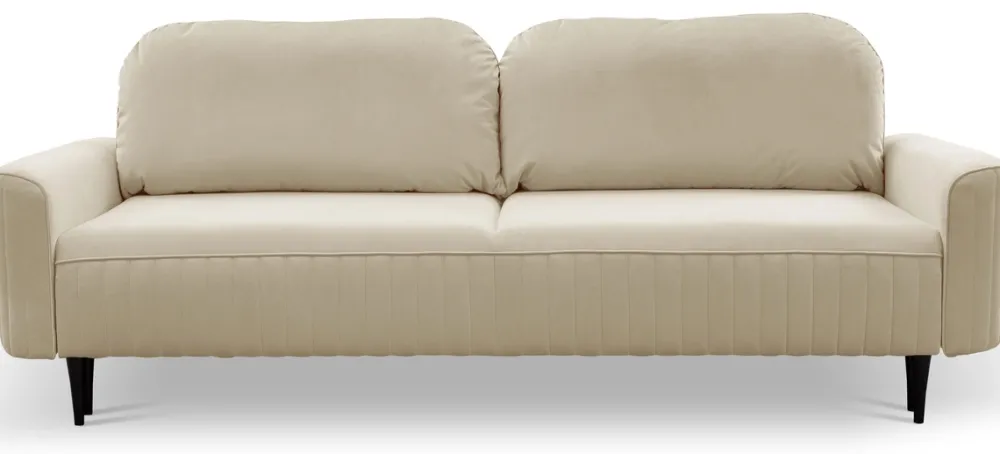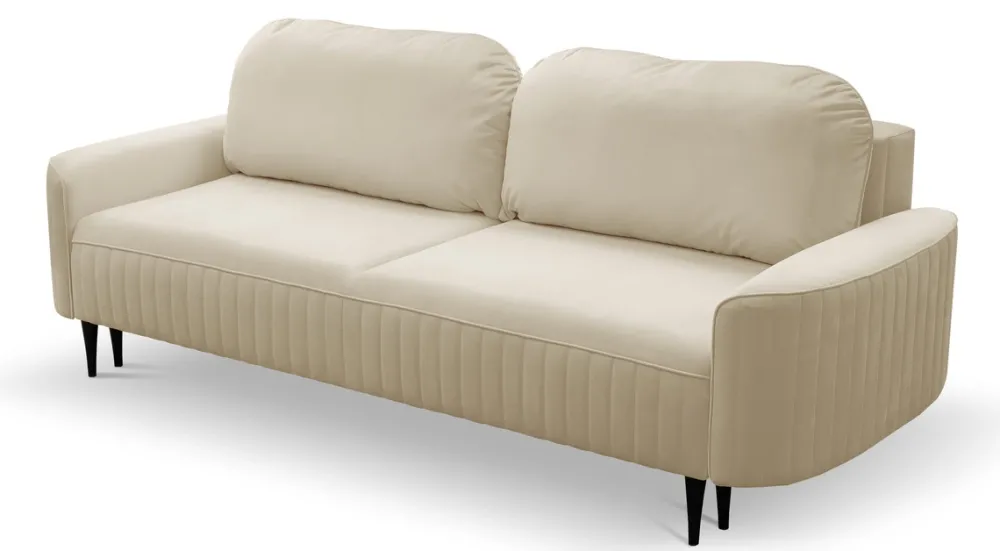 Ozdobne przeszycia na tkaninie Velluto nadają sofie wyrafinowanego wyglądu, a wysokie drewniane nóżki dodają lekkości i elegancji. Trzyosobowa sofa z funkcją spania doskonale wpasuje się zarówno w nowoczesne, jak i bardziej klasyczne wnętrza.