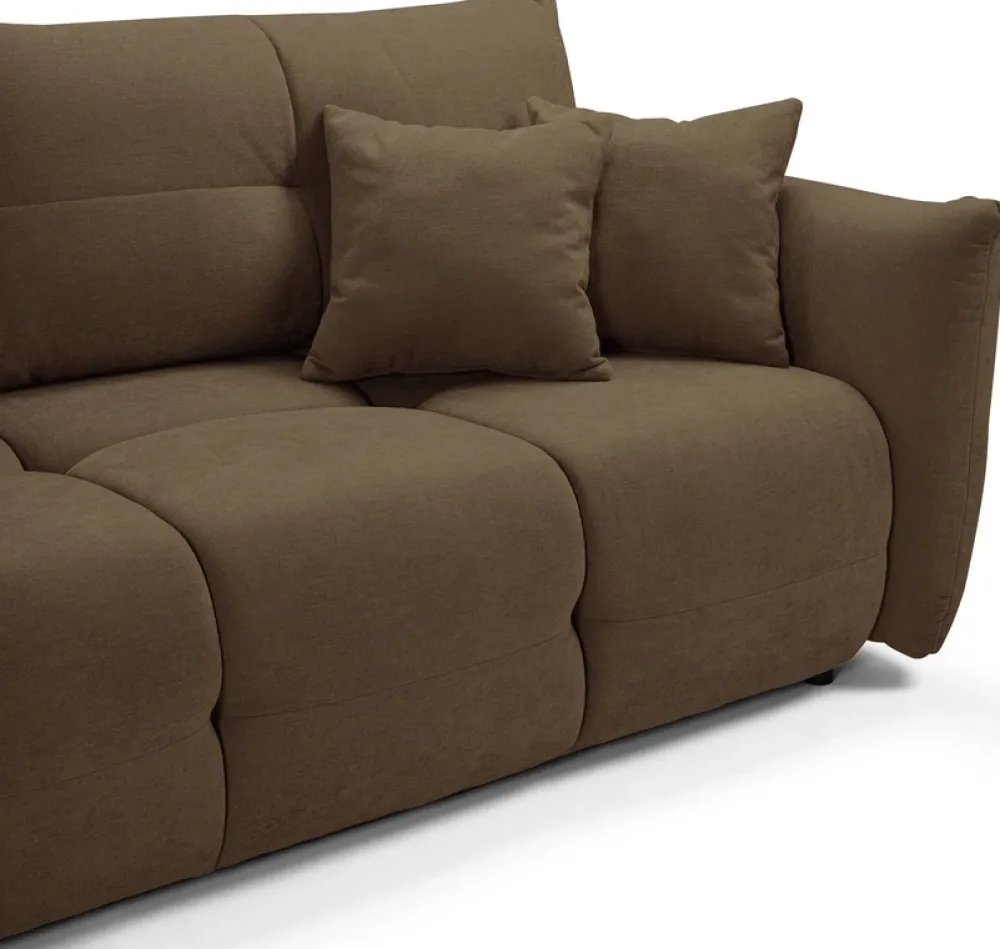 Siedzisko wypełnione pianką PUR zapewnia nie tylko miękkość, ale także optymalne wsparcie ciała, dzięki czemu każda chwila spędzona na sofie staje się prawdziwym relaksem. Dwie duże poduszki oparciowe i dwa urocze jaśki dopełniają komfort, oferując idealne warunki zarówno do siedzenia, jak i leżenia.